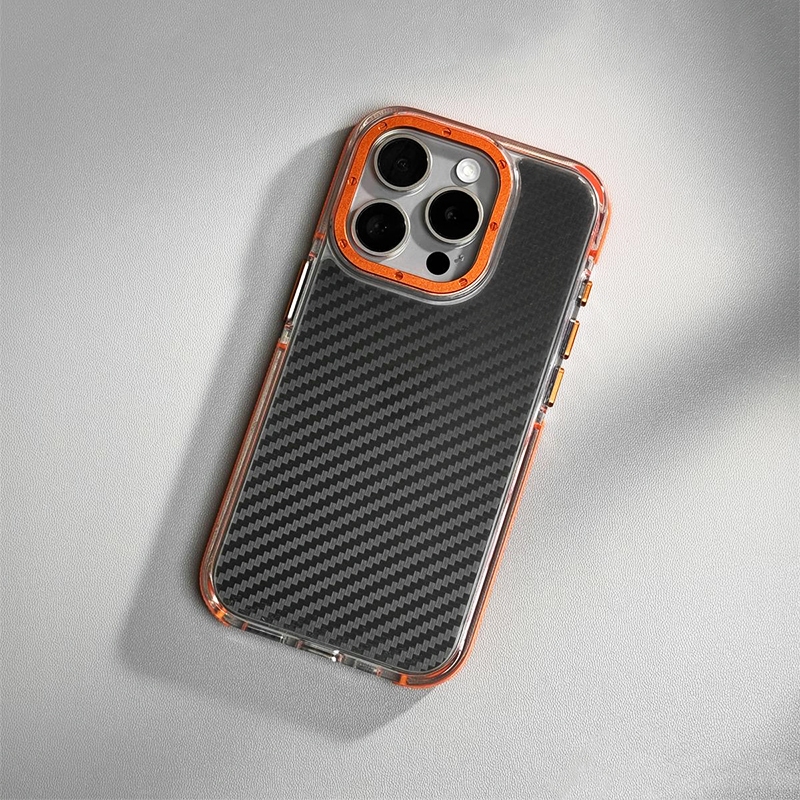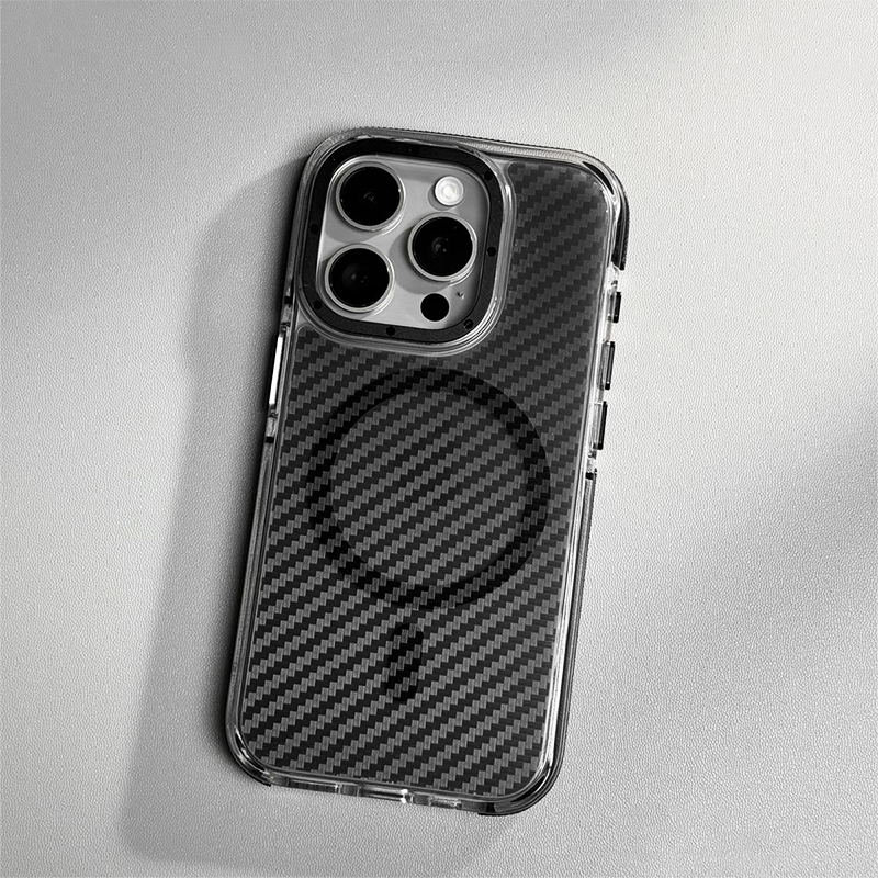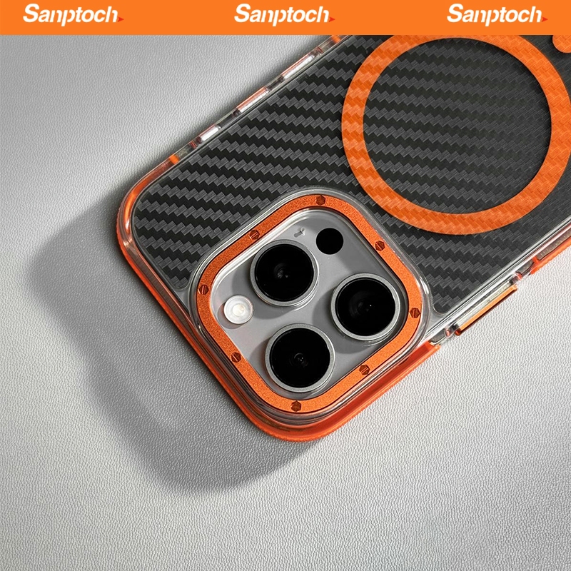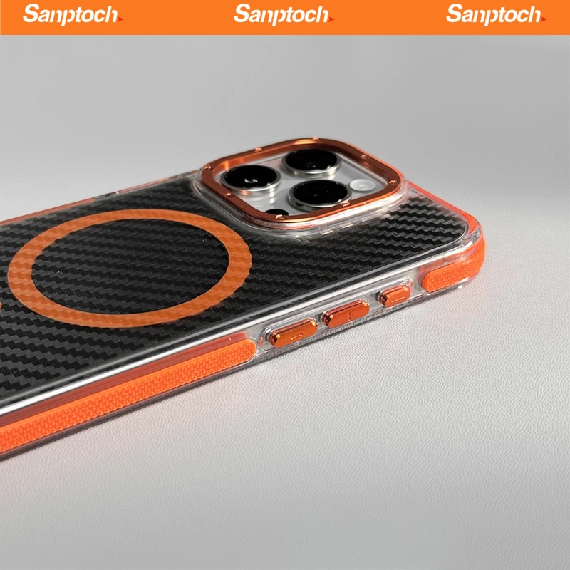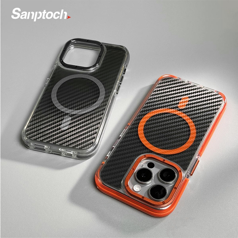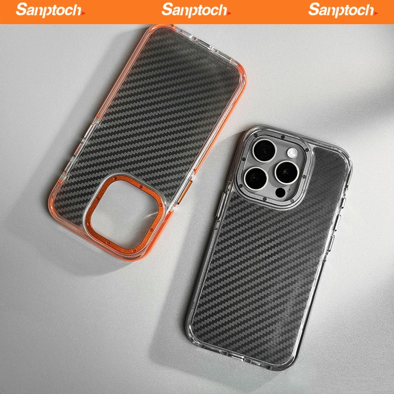 Sanptoch Translucent Carbon Fiber Texture Phone Case For iPhone 15 / 14 / 13 Pro Max Anti-Slip Soft Frame+Anti-fingerprint Hard Cover For Magnetic Shockproof Protection Casing