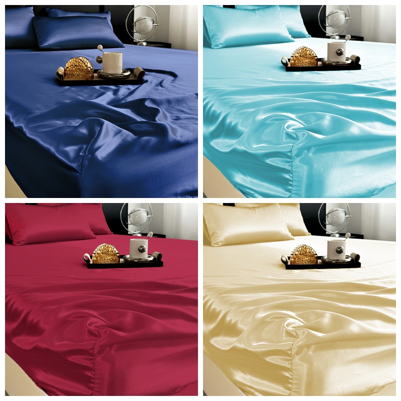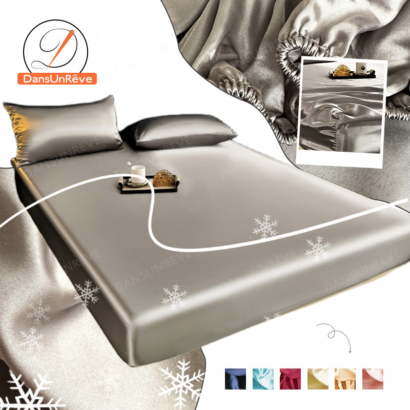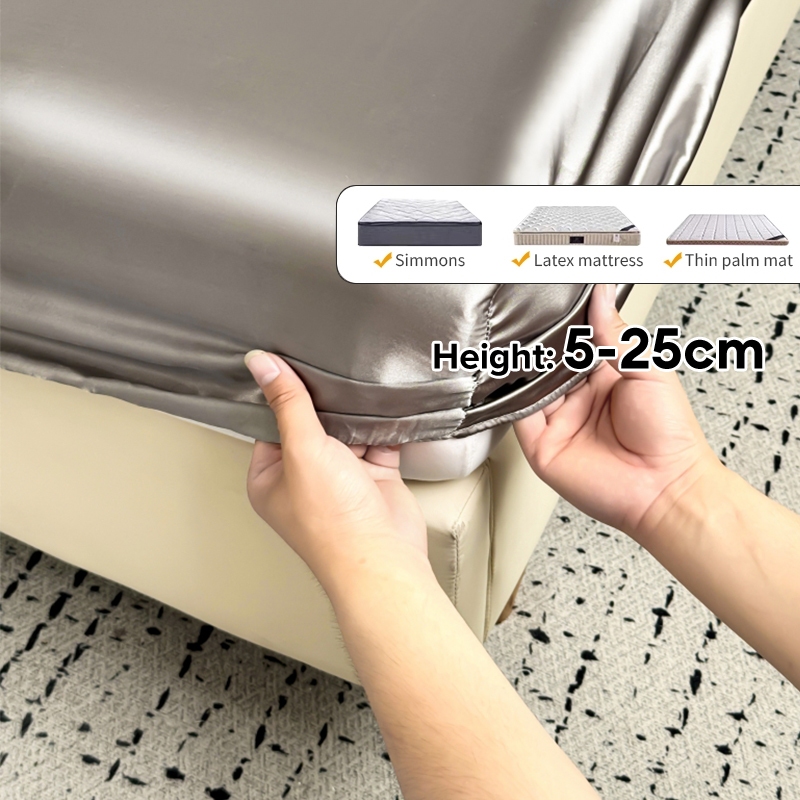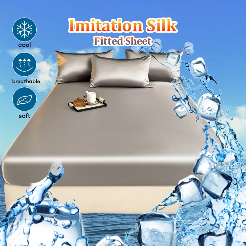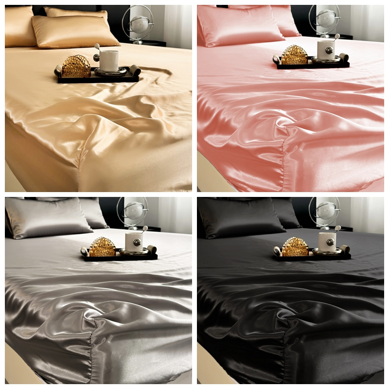 Dansunreve Ice Silk Bedsheet Cooling Washed Satin Sheets Summer Bed Sheet Pillowcase Fully Garterized Fitted Sheet Single Queen King Mattress Cover