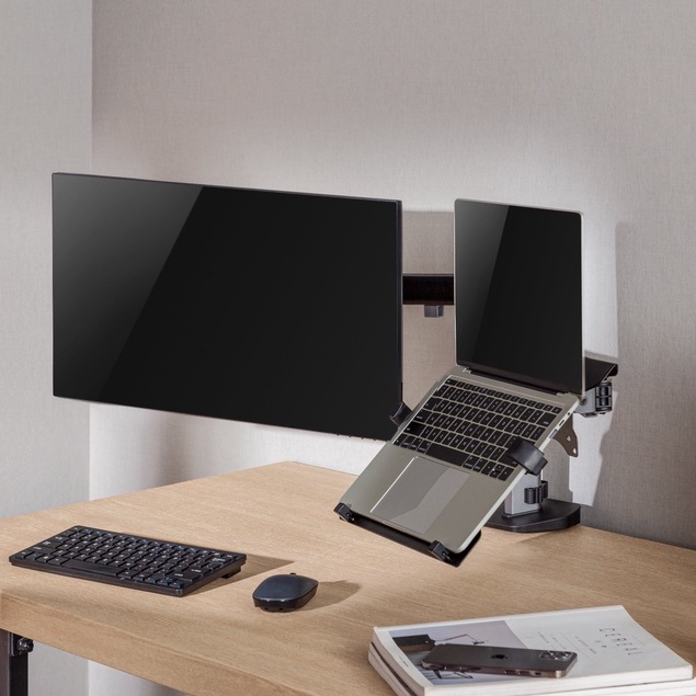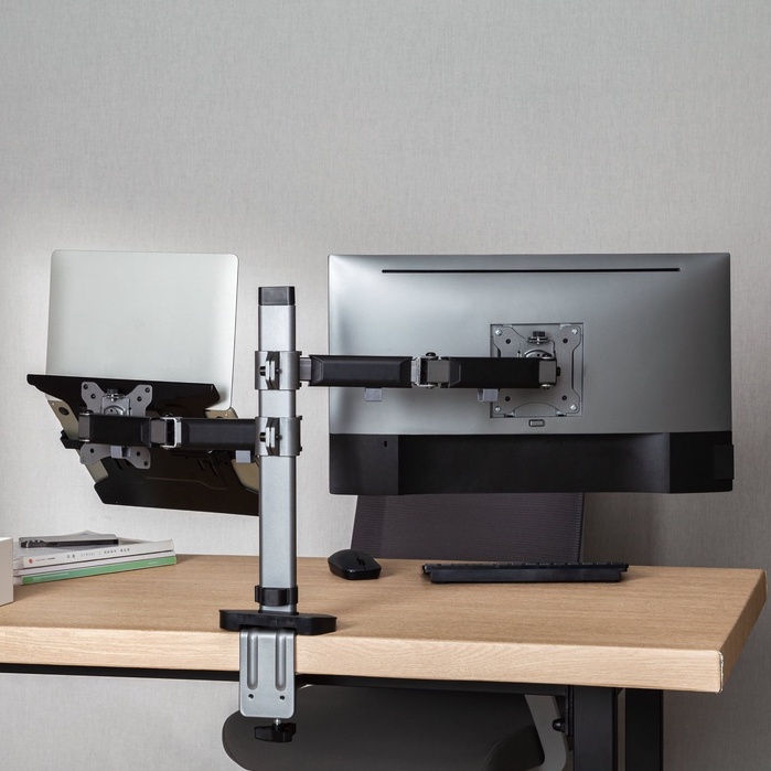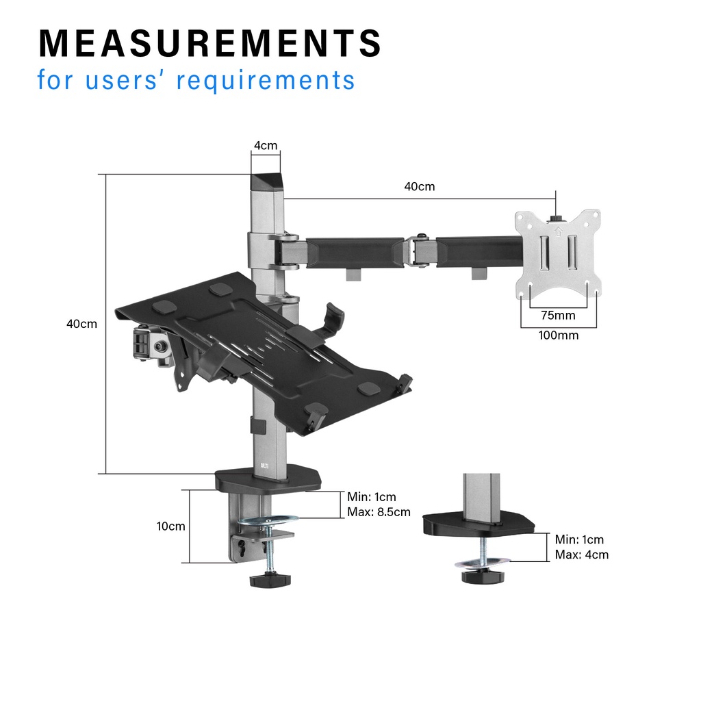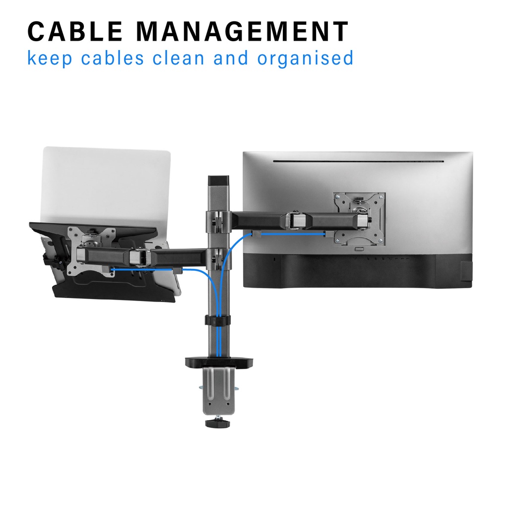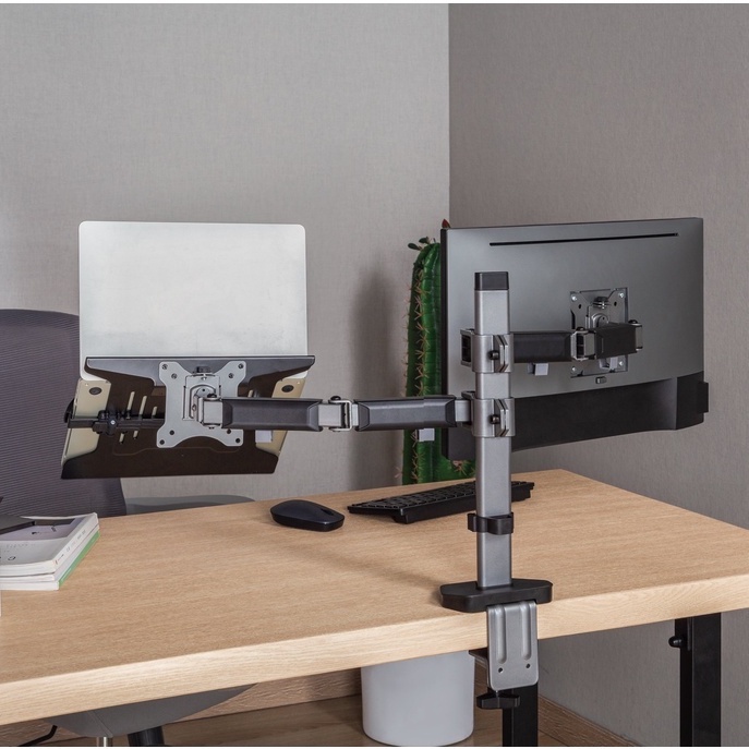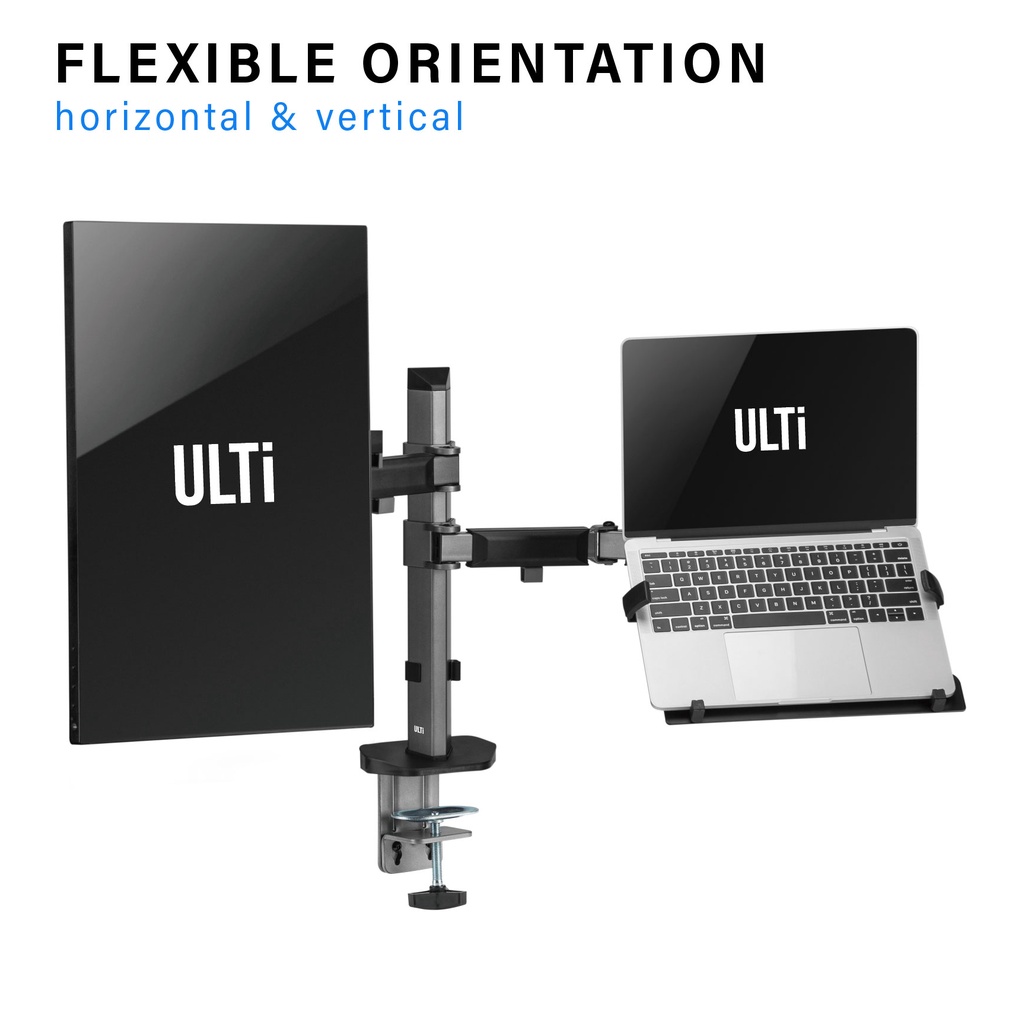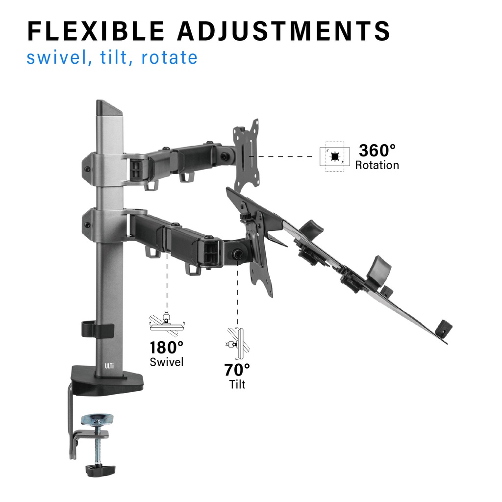 ULTi Stealth Premium Full Motion Monitor + Laptop Desk Mount, Articulating Double Center Arm, VESA Stand, Fits up to 32"