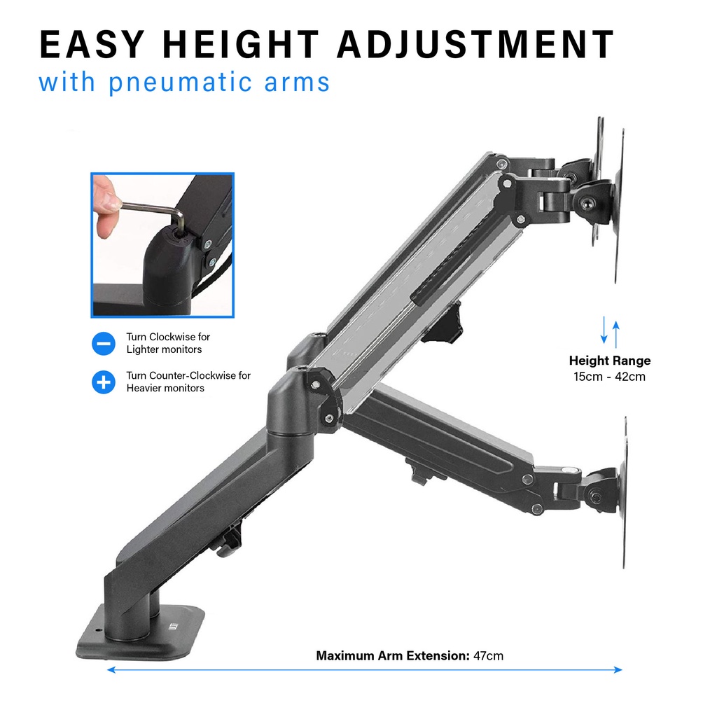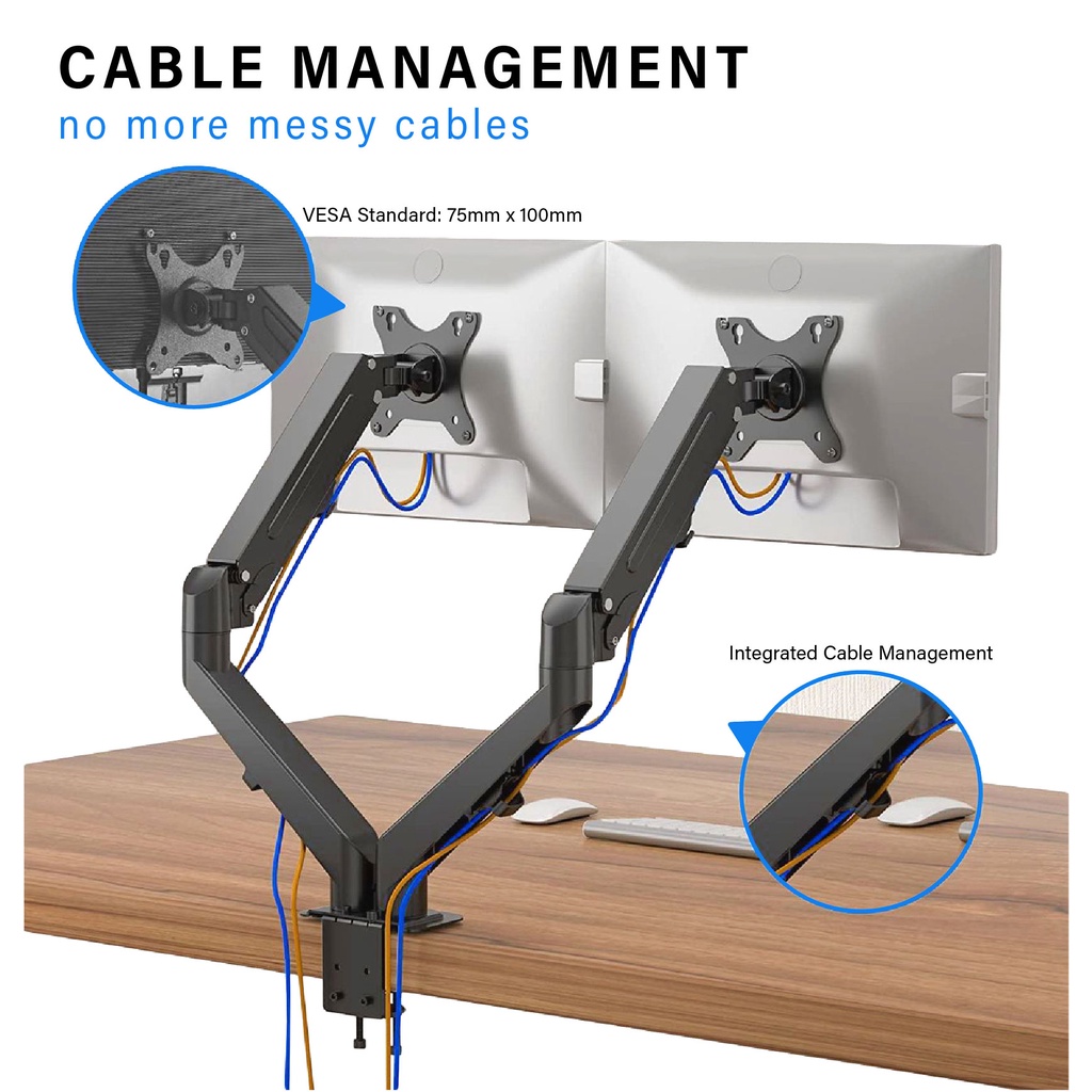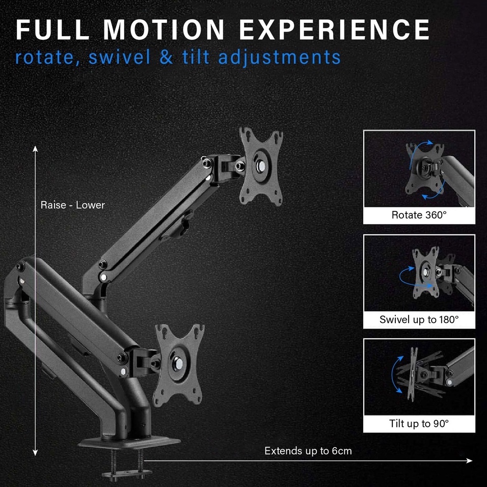 ULTi Arctic Monitor Arm w/ Laptop Tray Desk Mount Stand, Fits 2 Monitors, 75 & 100mm VESA, up to 27'