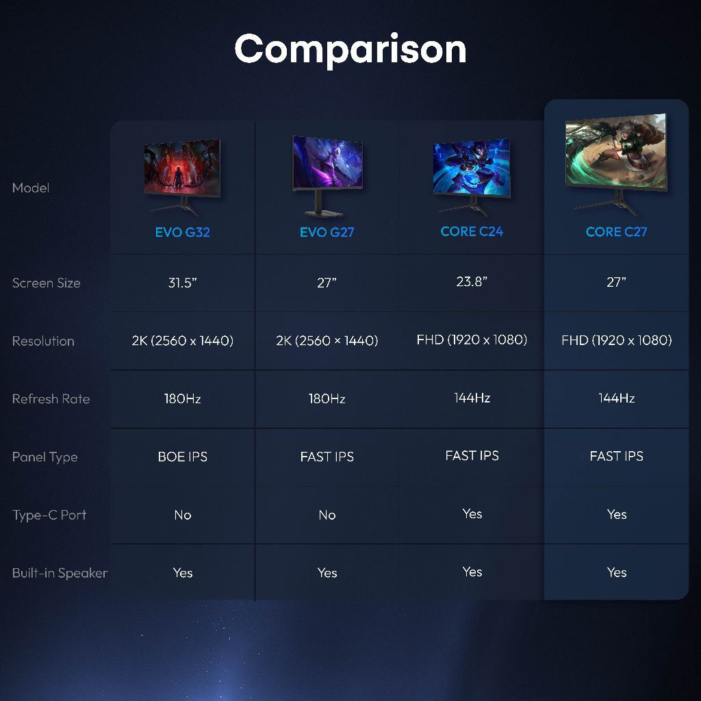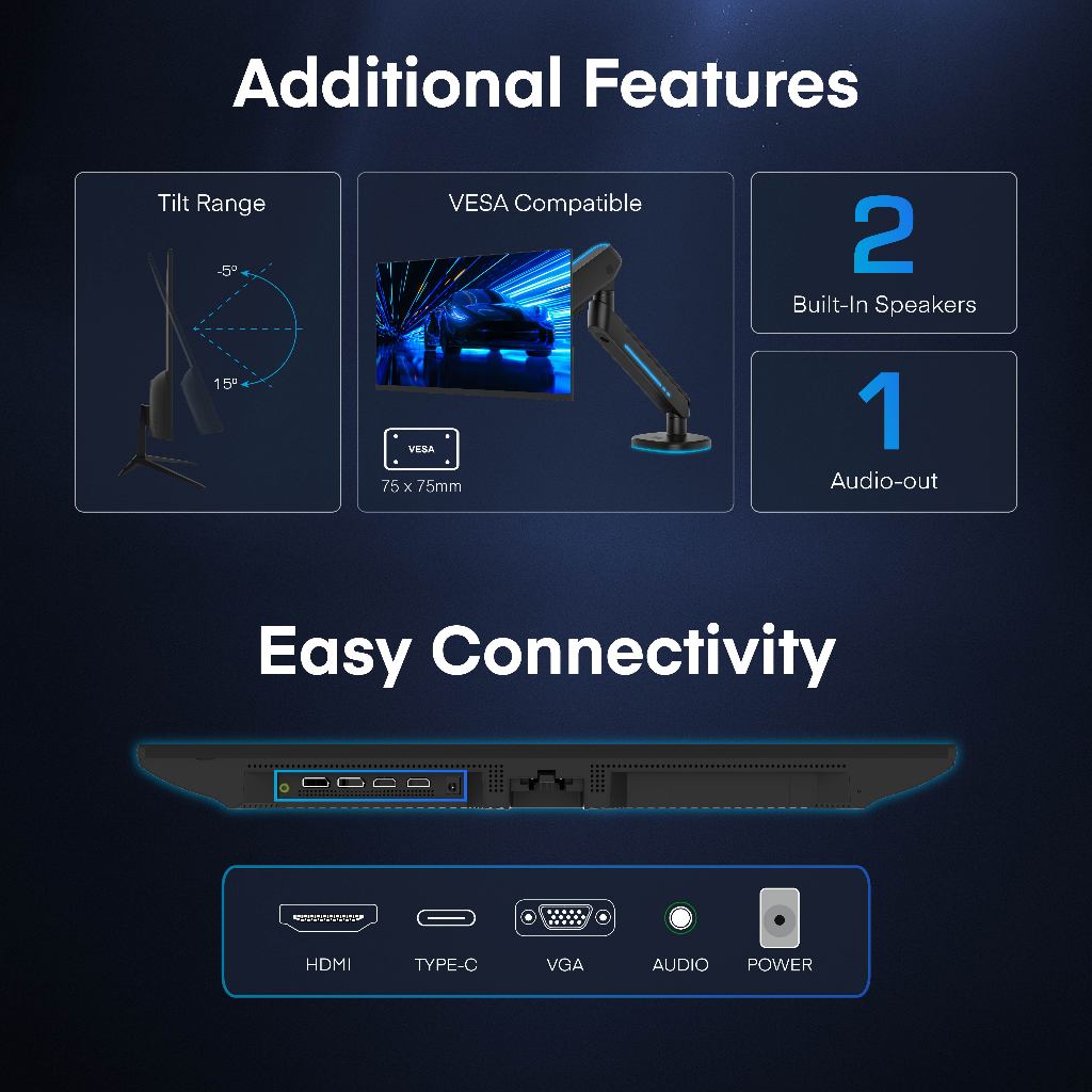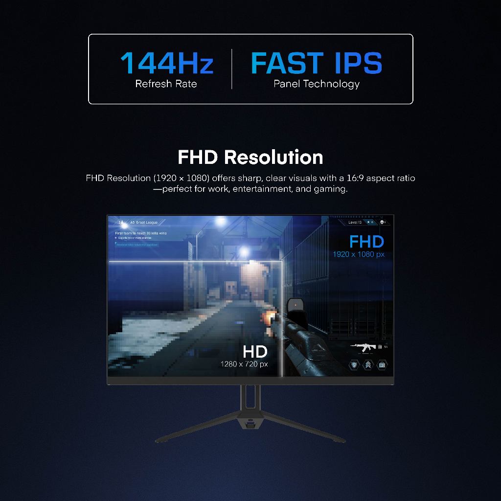 APEX+ CORE 27" 144Hz USB-C FHD Monitor - Fast IPS | 1ms | Type-C + HDMI + DP | Audio Speaker | VESA | Office + Gaming