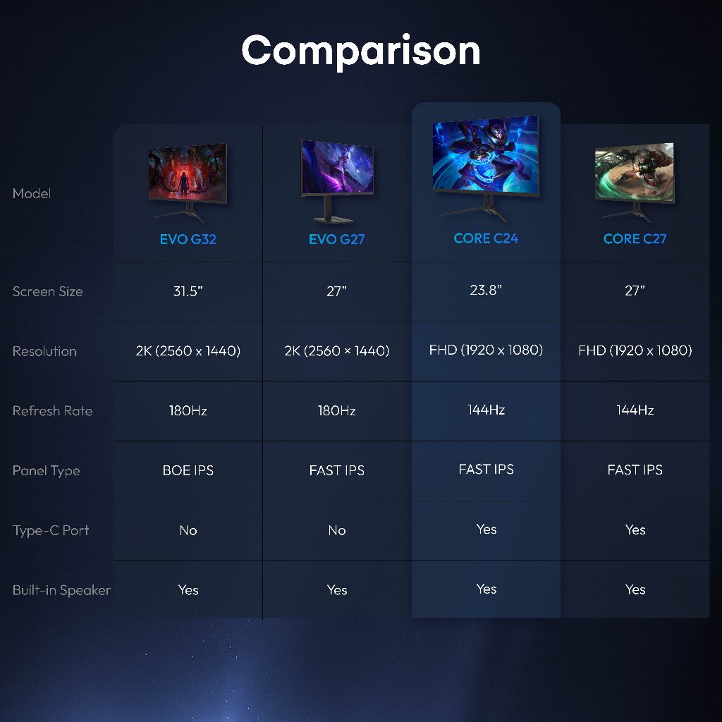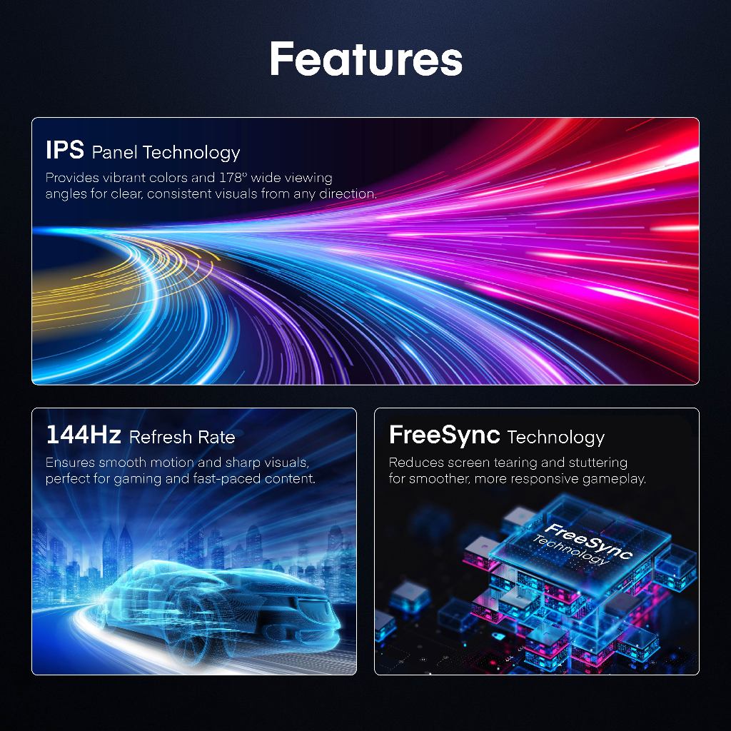 APEX+ CORE 24" 144Hz USB-C FHD Monitor - Fast IPS | 1ms | Type-C + HDMI + DP | Audio Speakers | VESA | Office + Gaming