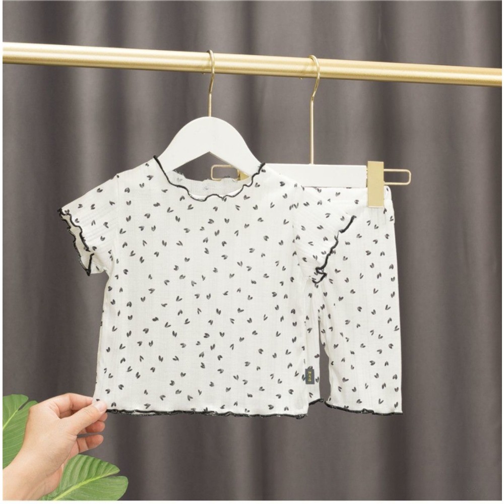 Bear Leader 3-7 Year Old Baby Girl Pajamas Summer Love Printed T-shirt Top and Pants Two-piece Set Thin Casual Home Children's Clothes
