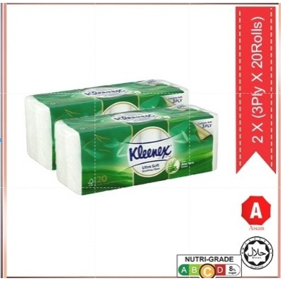 CHEAPEST IN TOWN !!!! KLEENEX ULTRA SOFT TOILET BATHROOM TISSUE WITH ALOE VERA EXTRACT 3 PLY ( 20 ROLLS)