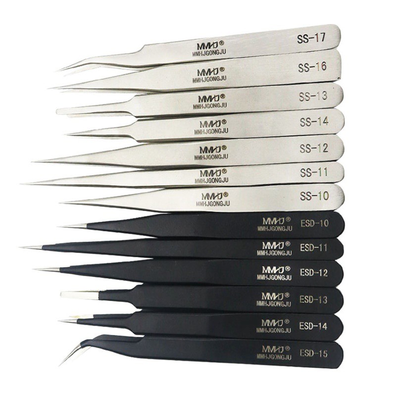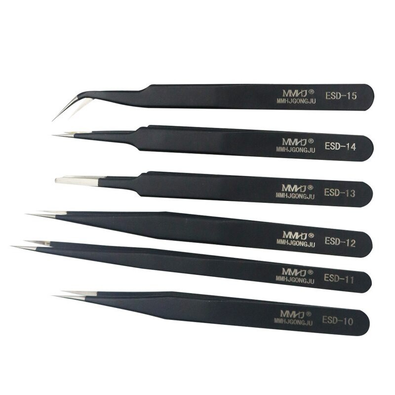 ESD-15 Anti-static Curved Straight Tip Forceps Precision Soldering Tweezers Electronic ESD Tweezers Tool ESD-10 ESD-12