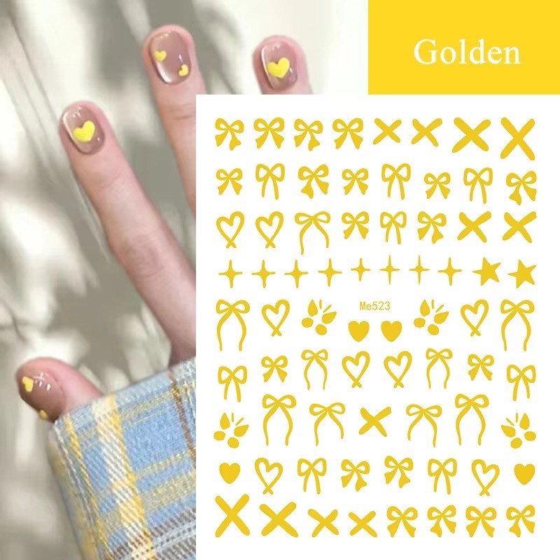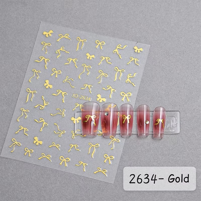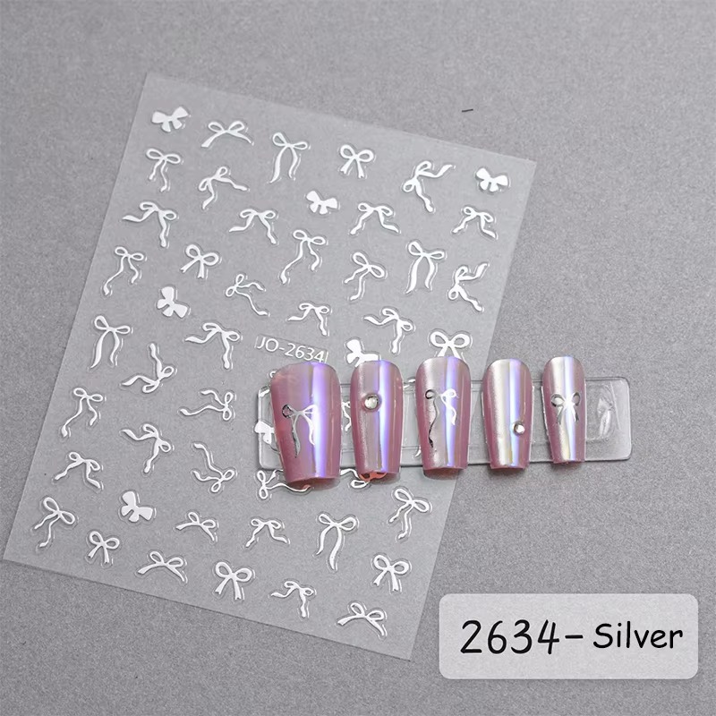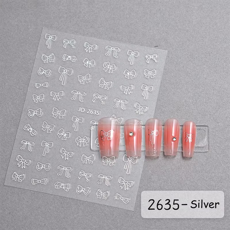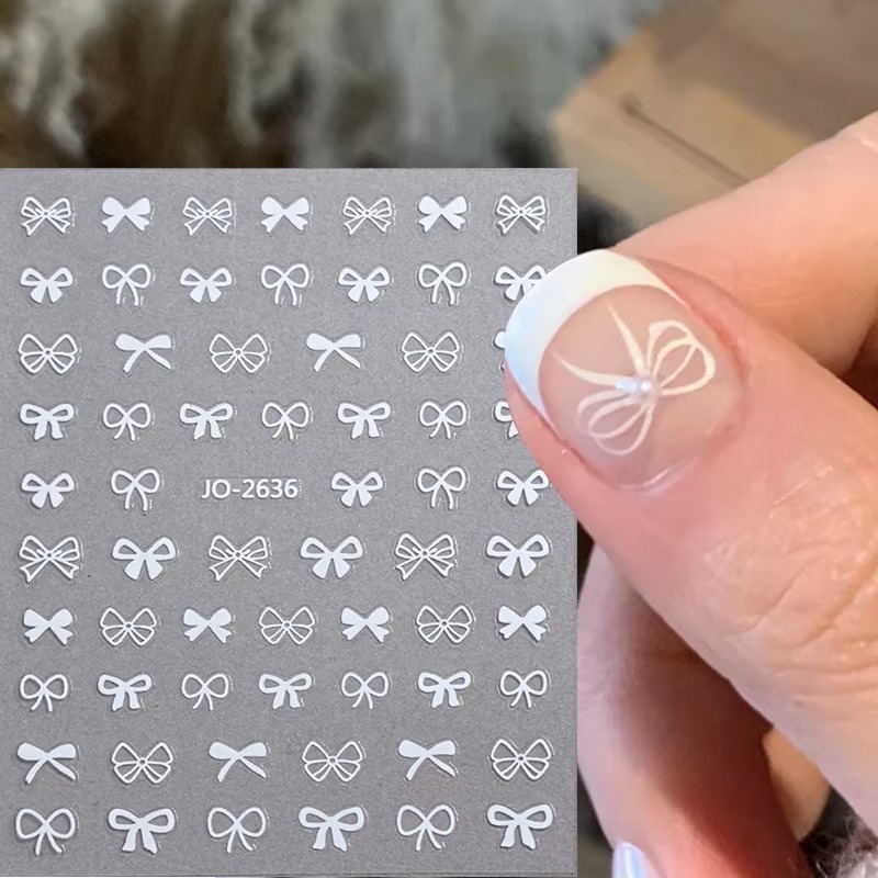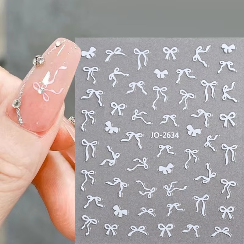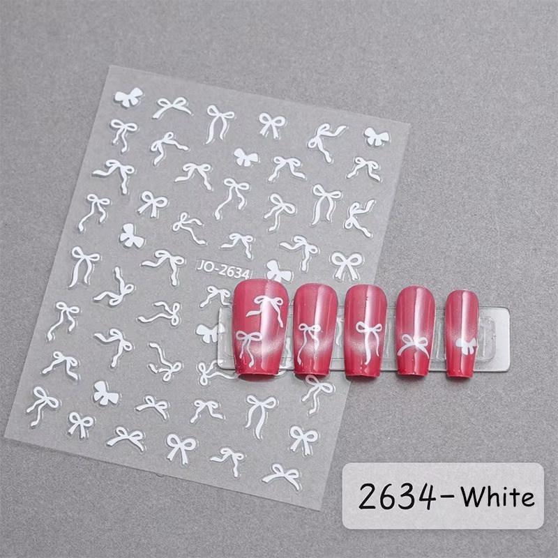 Monja Cute Bow Nail Stickers 3D Embossed Ribbon Nail Stickers Bowknot Sticker Nail Decor Accessories 贴纸手绘黑白金银四色蝴蝶结飘带.