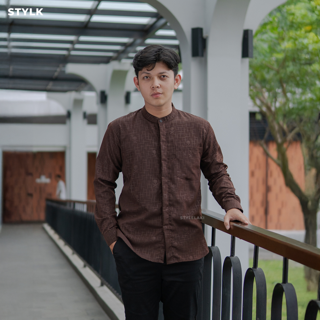 STYLELAKI - Arkan Men's Slim Fit Long Sleeve Patternedkoko | Comfortable to Wear for Ramadan Worship - White Kurta for Men Kurta Lelaki