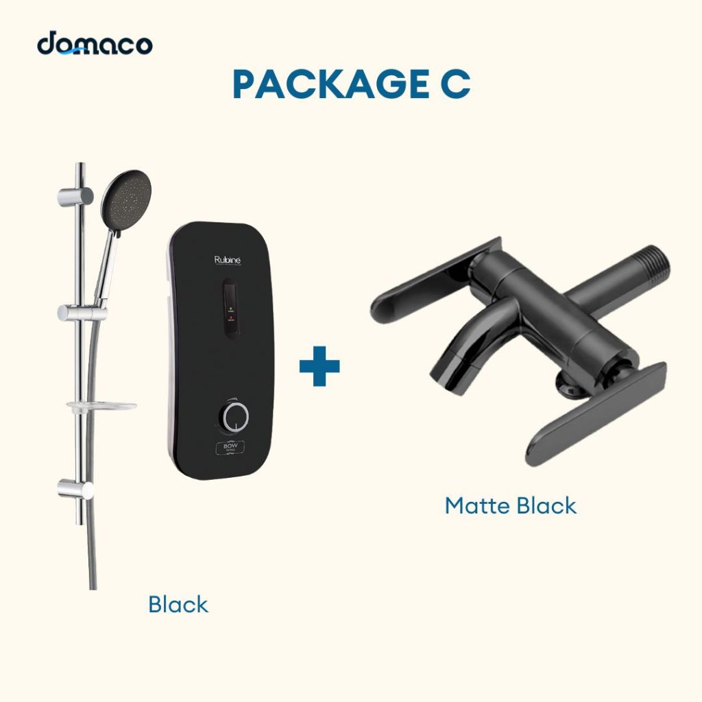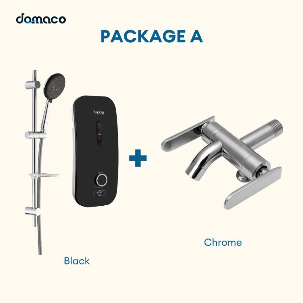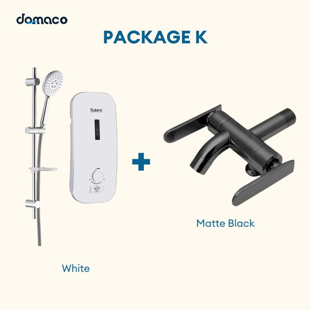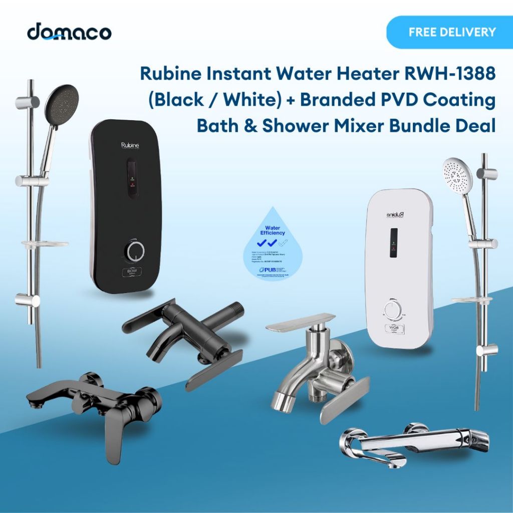 Rubine Instant Water Heater RWH-1388 (Black / White) + Branded PVD Coating Bath & Shower Mixer Bundle Deal