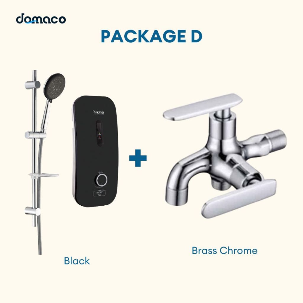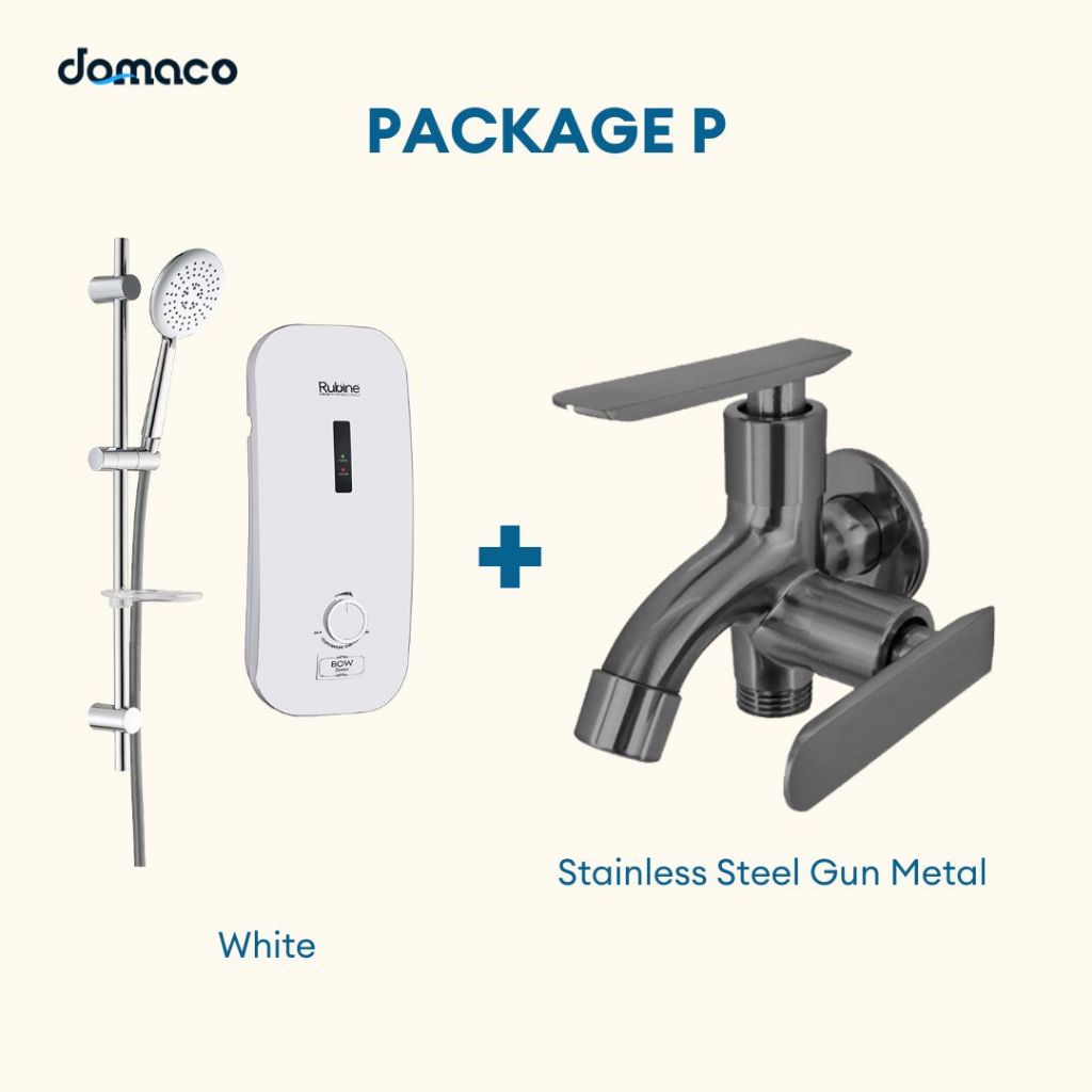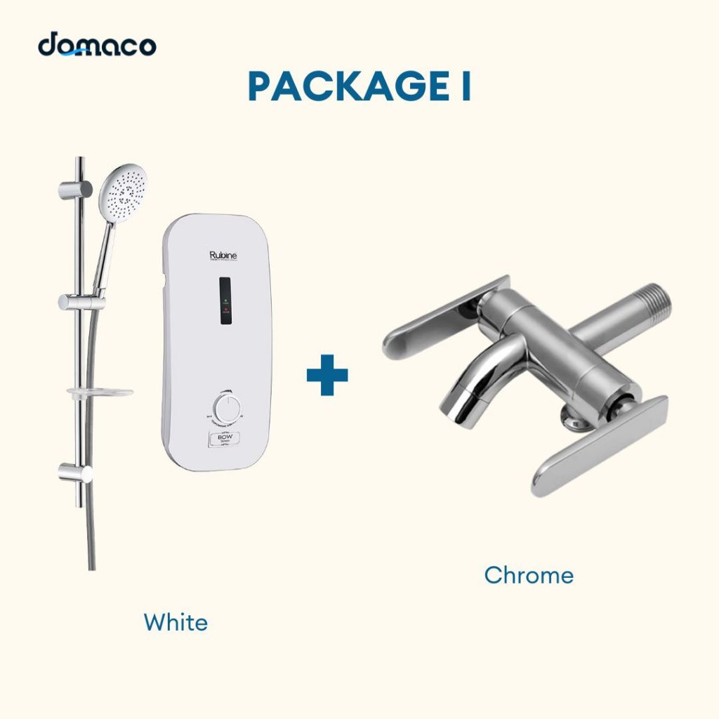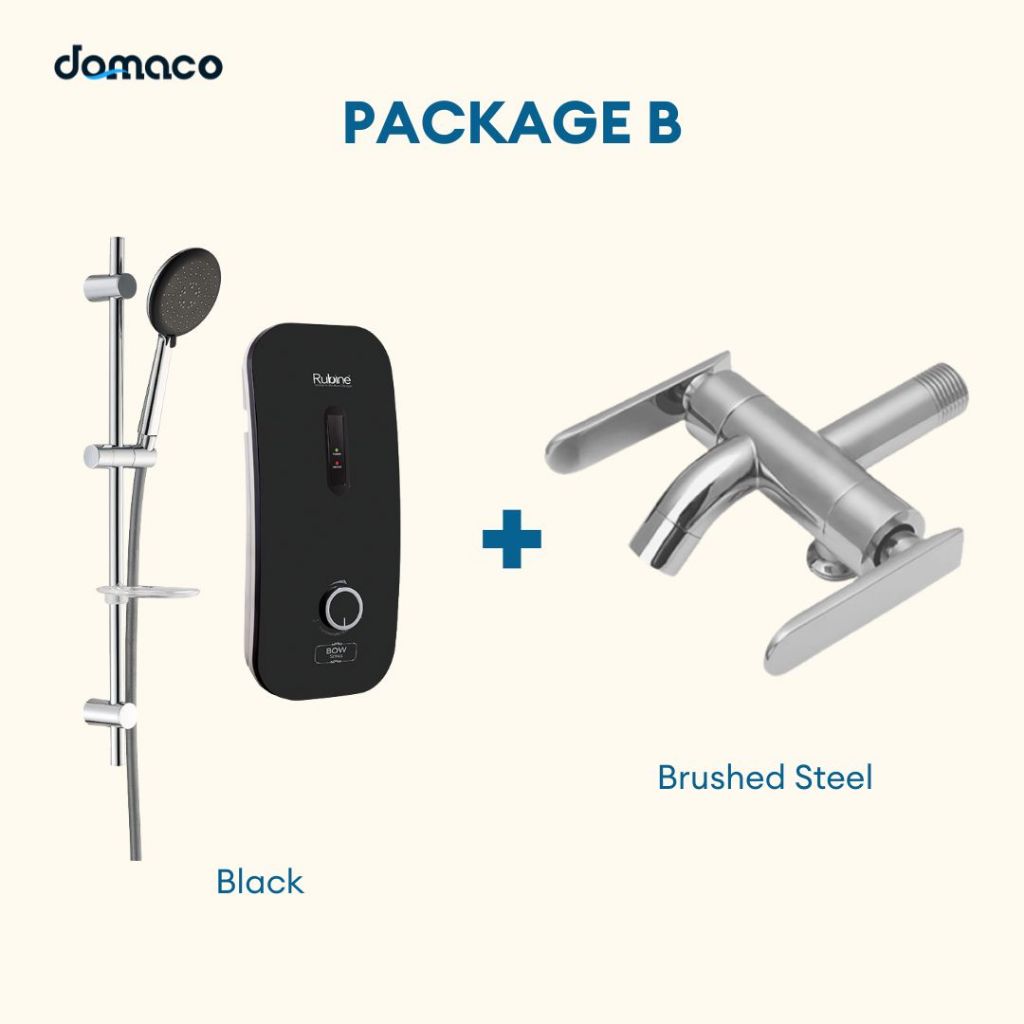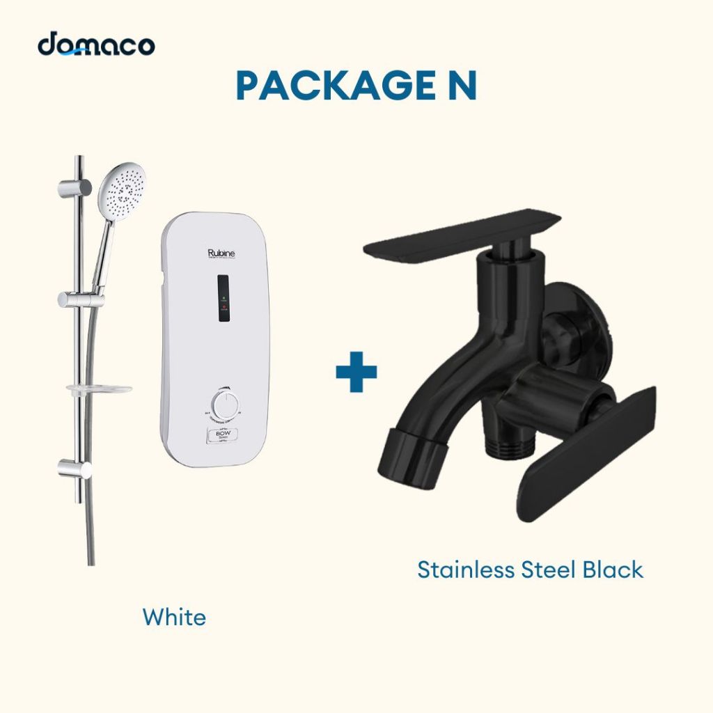 Rubine Instant Water Heater RWH-1388 (Black / White) + Branded PVD Coating Bath & Shower Mixer Bundle Deal