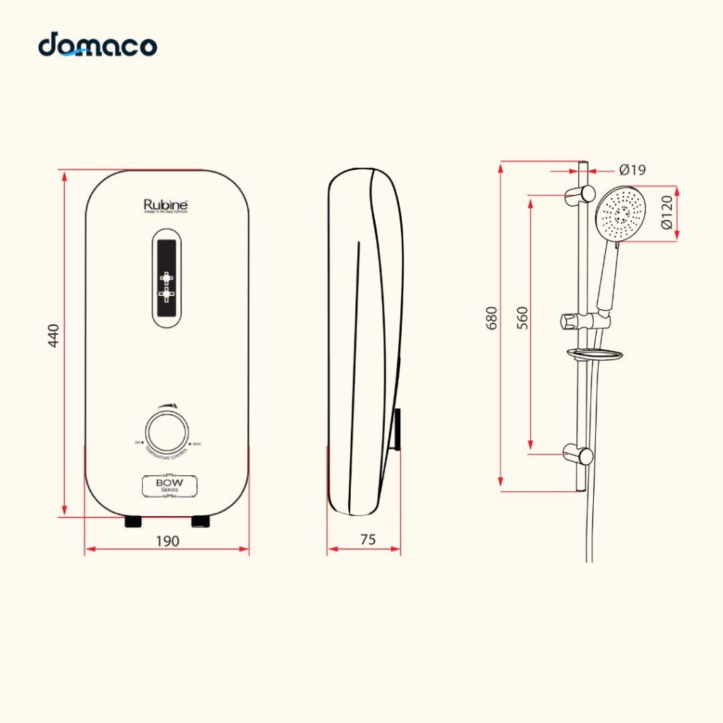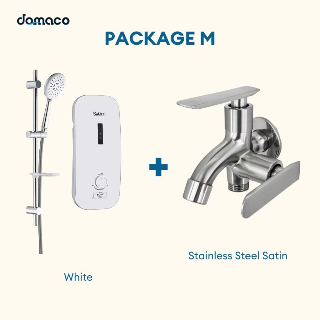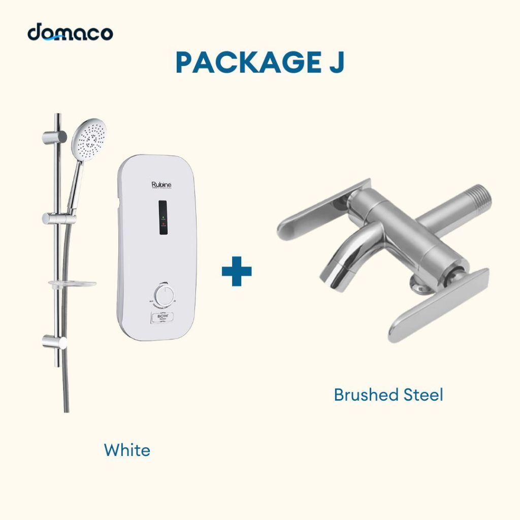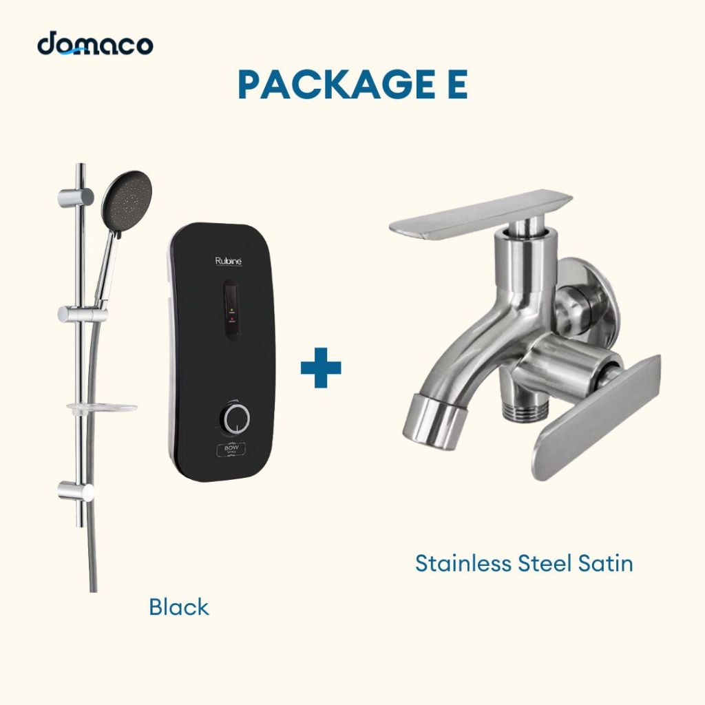 Rubine Instant Water Heater RWH-1388 (Black / White) + Branded PVD Coating Bath & Shower Mixer Bundle Deal