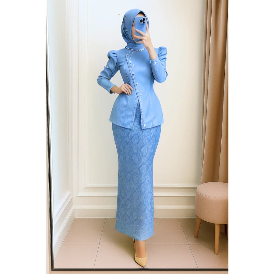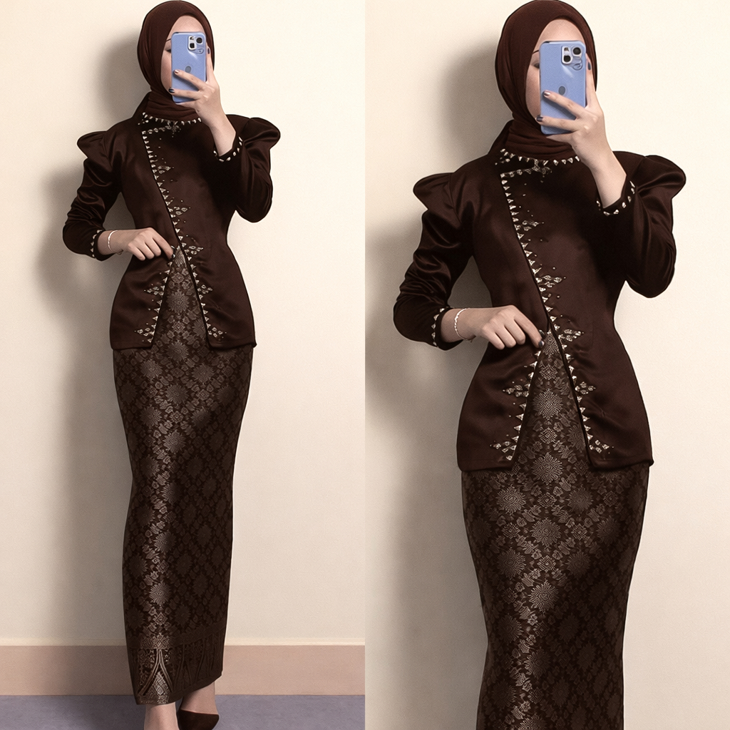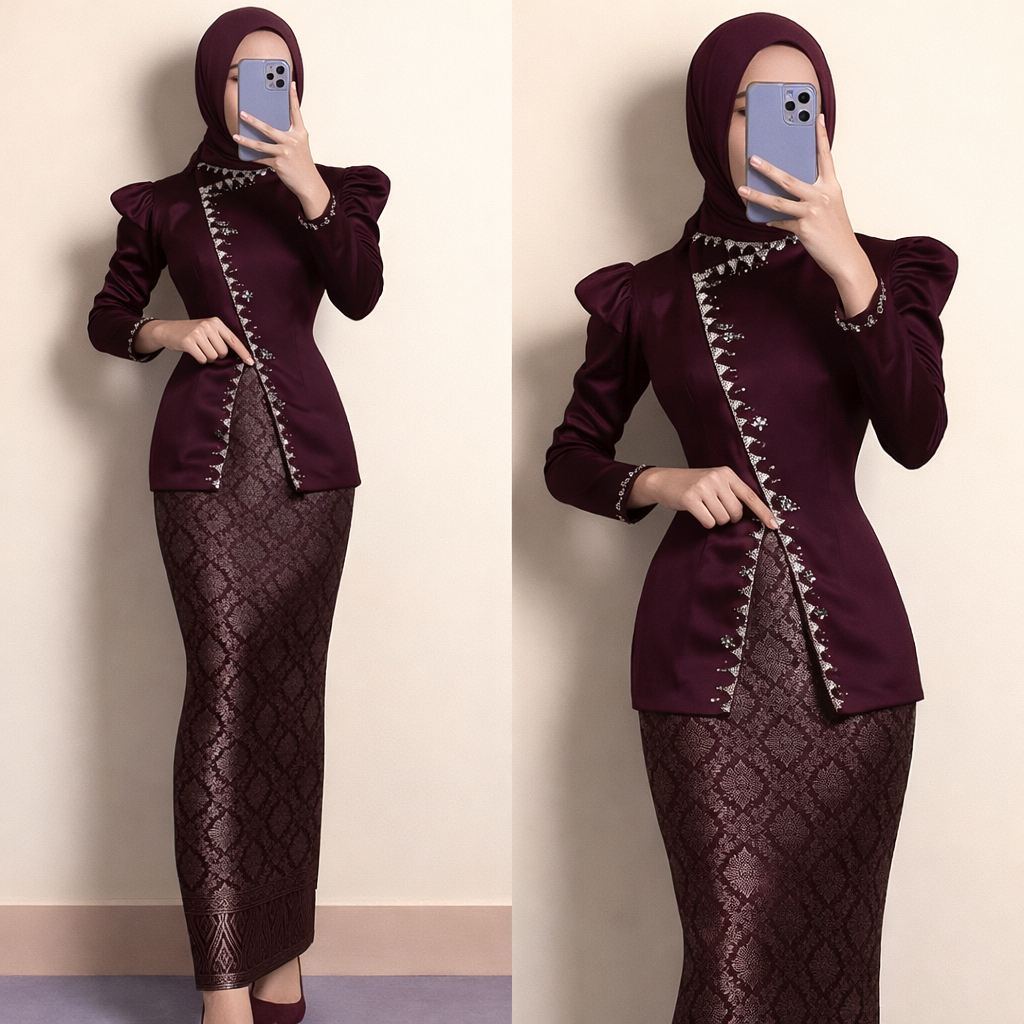 (LEBARAN TREND 2026) One Set Inara Baju Kurung Melayu Songket Skirt Modern Satin Dress Party Dress for Graduation Events Viral Burgundy Mahogany TREND 2026