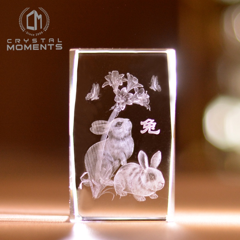 [Ready Made Image] 3D Souvenirs Animals FREE 2D Text Laser Engraving Optical Crystal Material ART050-2