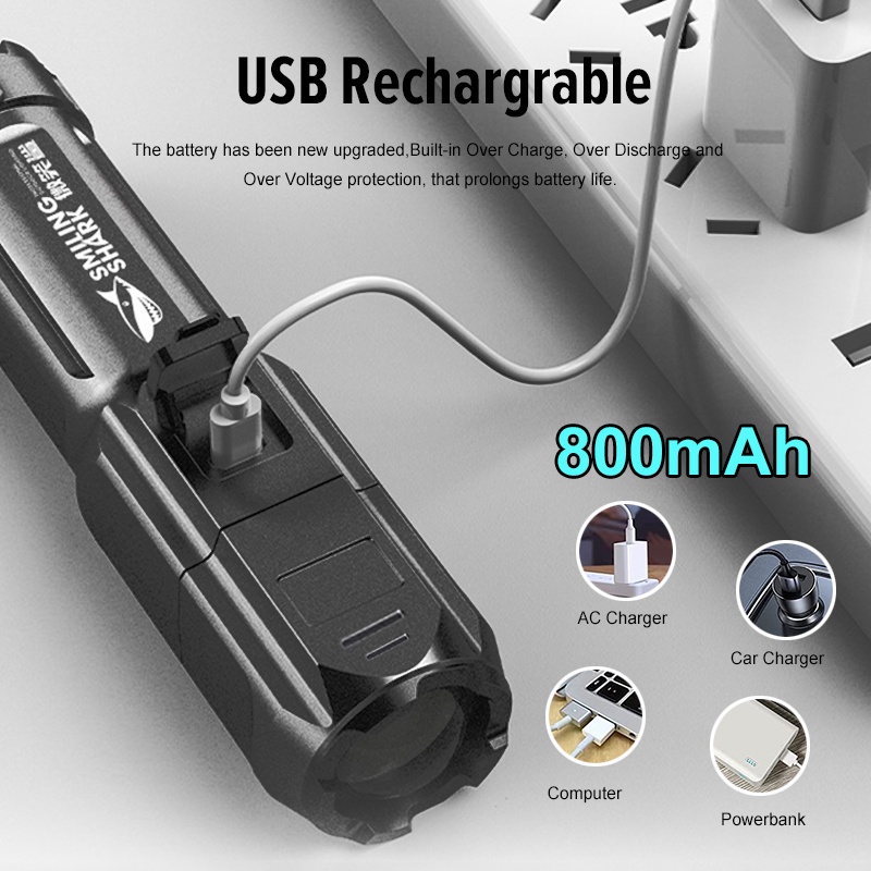 Waterproof Torchlight Super Bright Torch Light LED Flashlight Rechargeable Outdoor Flash Light Lampu Suluh 手電筒強光 led 手電筒 Torch Light Rechargeable