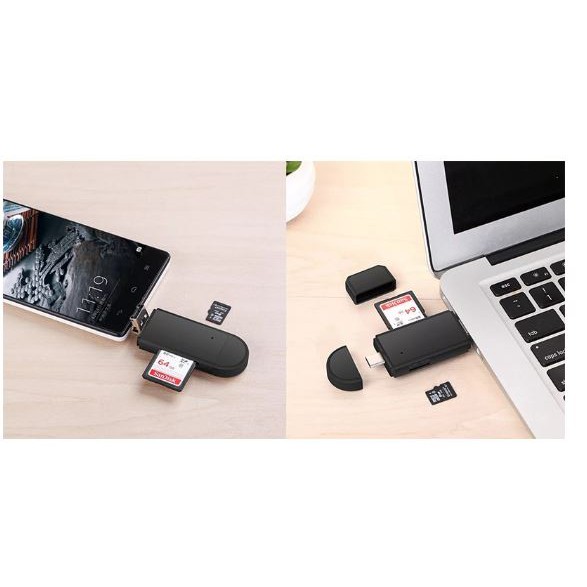 3 in 1 USB 2.0 Type C OTG Card Reader Micro SD TF High Speed