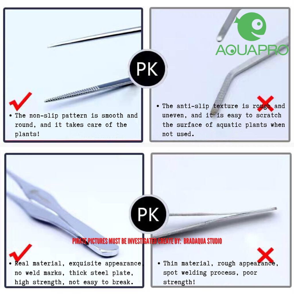 AQUAPRO Stainless Steel & Matte Black Tweezers Grip /Cusp/ Curve