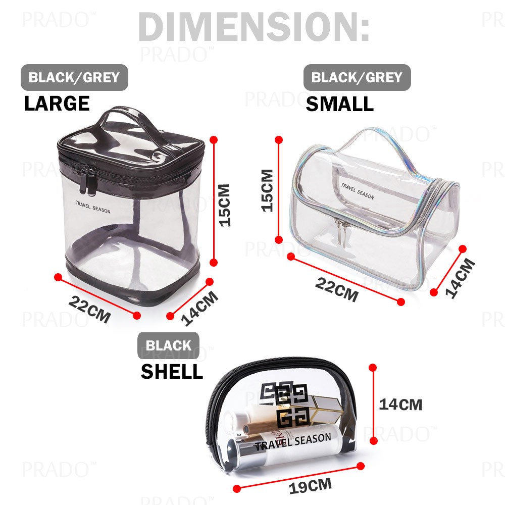 PRADO Women Clear Make-up Bag Waterproof Washable Cosmetic Pouch Toiletry Storage Bag Portable Beg Kosmetik 化妆包