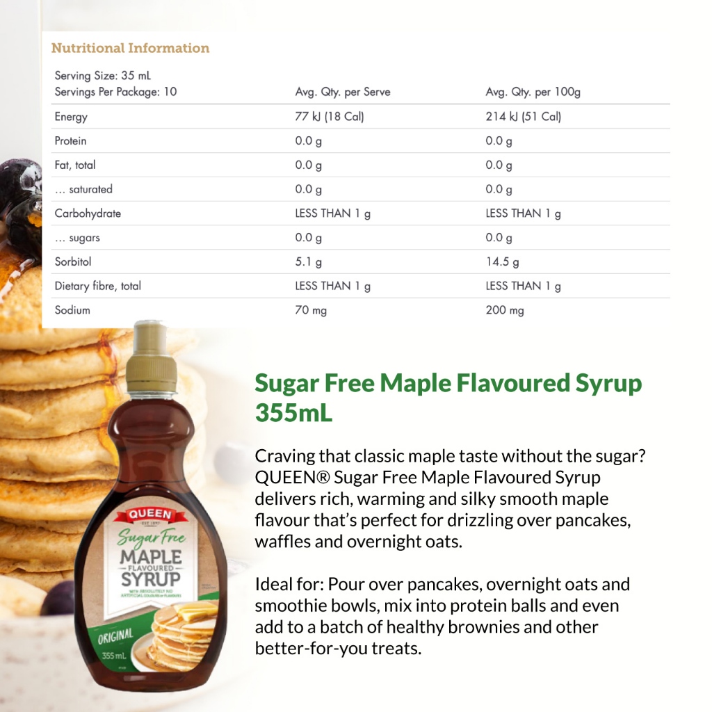 Queen | Sugar Free Maple Flavoured Syrup Sugar Free Topping 355ml Caramel Topping Tanpa Gula Sirap Maple Tanpa Gula