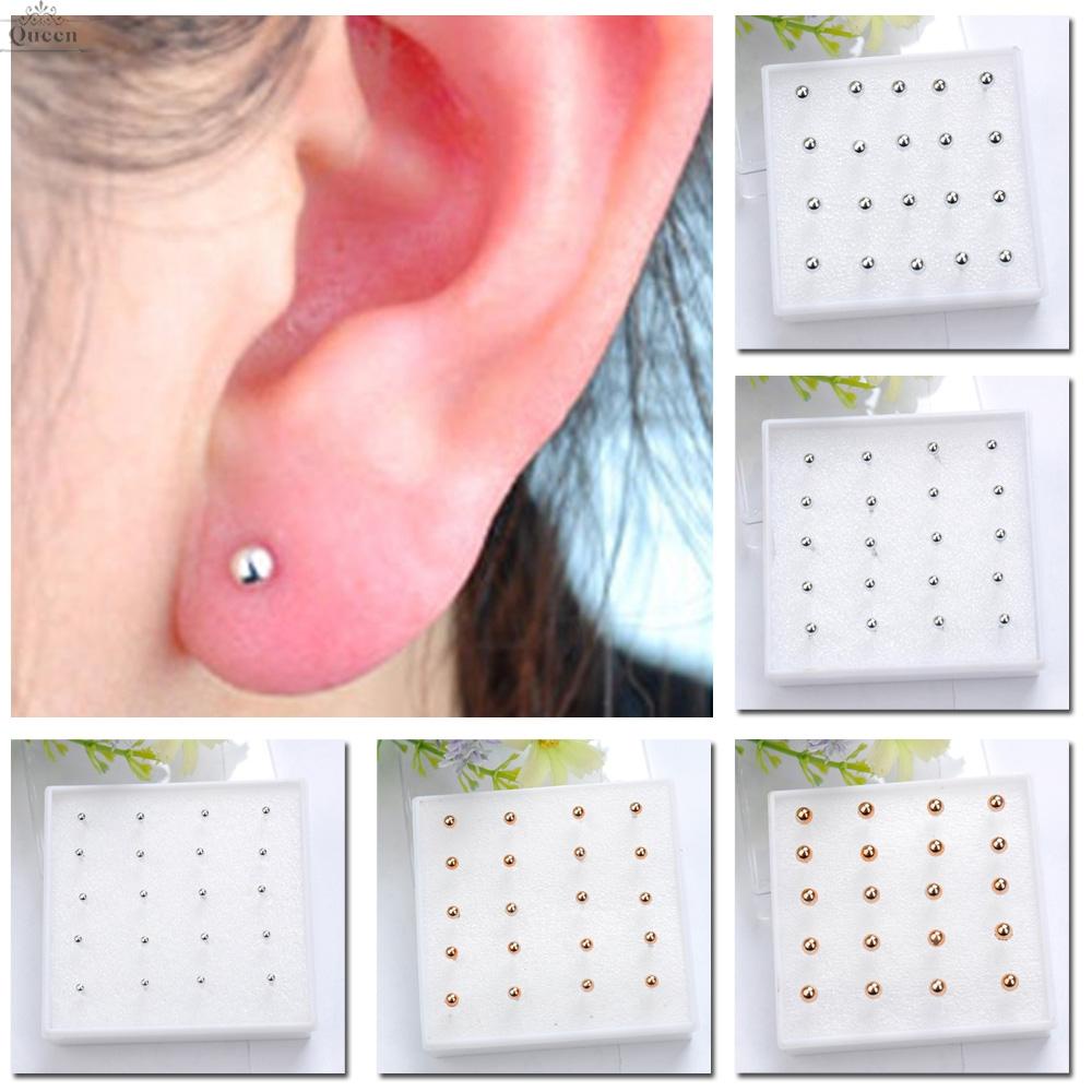 QUMMALL-10 Pairs 2mm/3mm/4mm ,Gold Plated Silver Ball Bead Earrings Ear Studs-Jewelry#yqueenmall