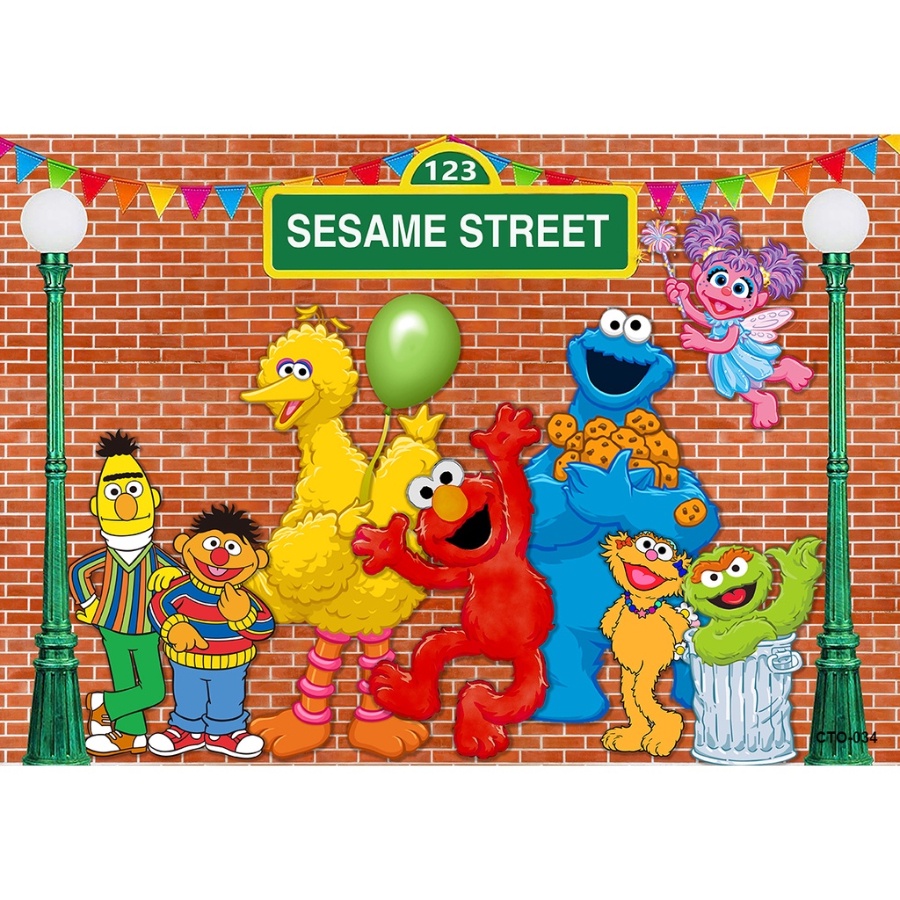 Elmo Birthday Party Backdrops Sesame Street Brick Wall Kids Baby Shower Newborn Photography Backgrounds Custom