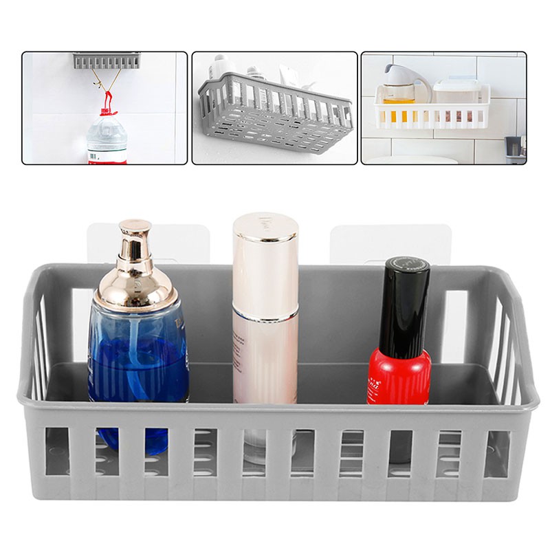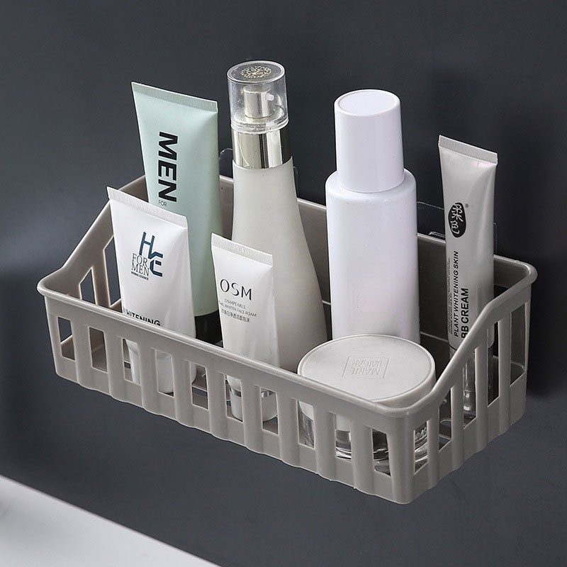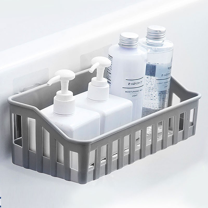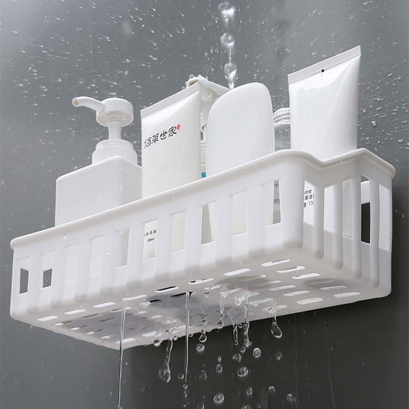 Self Adhesive Wall Mounted Bathroom Holder Shower Gel Shampoo Soap Rack Suction Kitchen Organizer Toiletries Rack