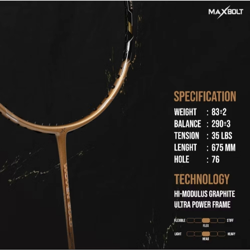 Maxbolt Raket Badminton / Badminton Racket WOVEN GOLD FOC Cover Racket
