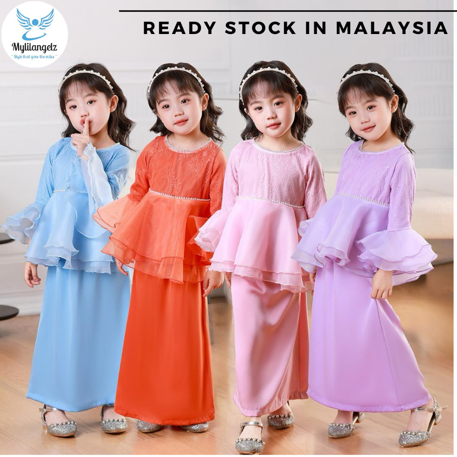 Mylilangelz ML6060 Kids Baju Raya Ruffles Organza Tiered Peplum Baju Kurung Moden
