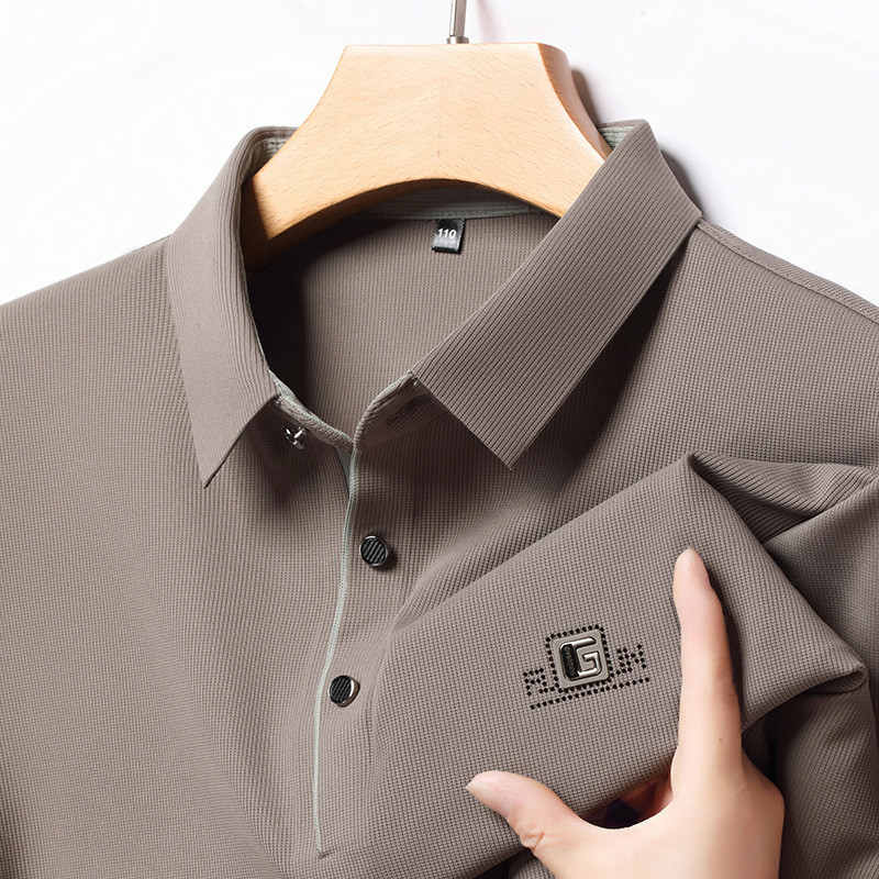 Middle-Aged Men's Clothing Long Sleeve T T-shirt polo Business Casual Spring and Autumn Loose Pure Color All-Matching Bottoming Shirt Top