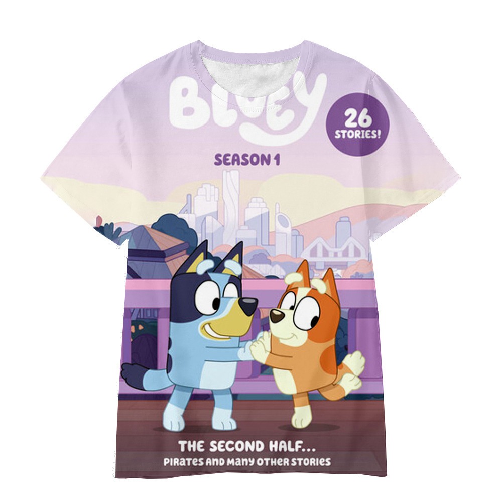 Kids Cartoon Short Sleeves Bluey Clothes Bluey and Bingo Family 3D Print T Shirts Sheep Dog Clothes