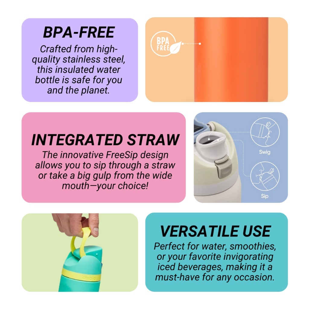 [READY STOCK] 16oz/19oz/24oz/32oz Compatible Owala Same Style Kids FreeSip Stainless Steel Water Bottle with Locking Push-Button Lid