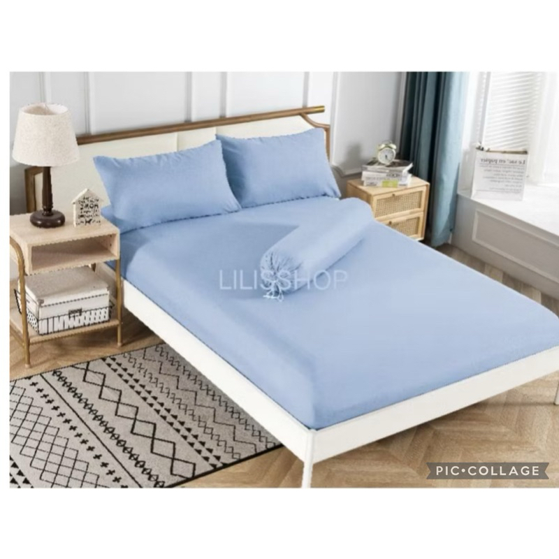 Plain Fitted Bedsheets Set with pillow case & Bolster case 890 TC