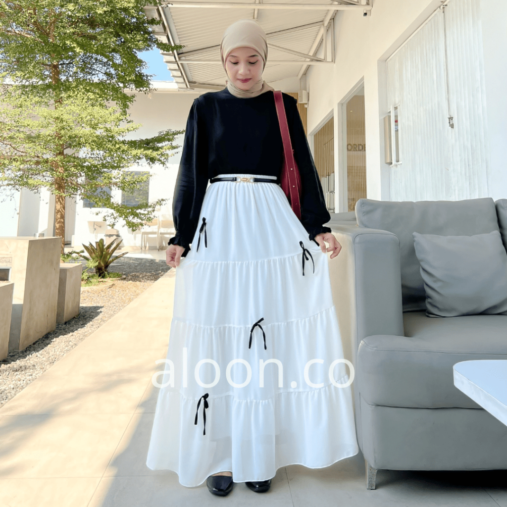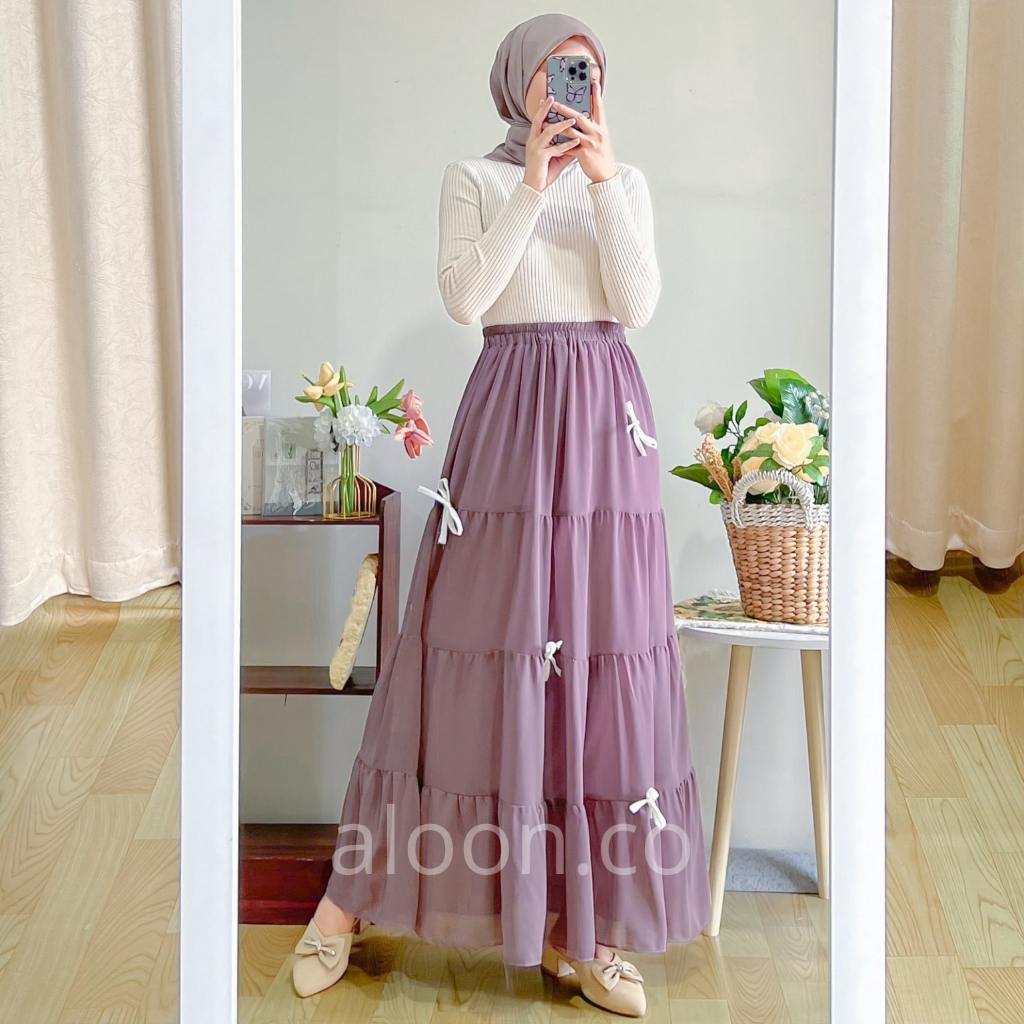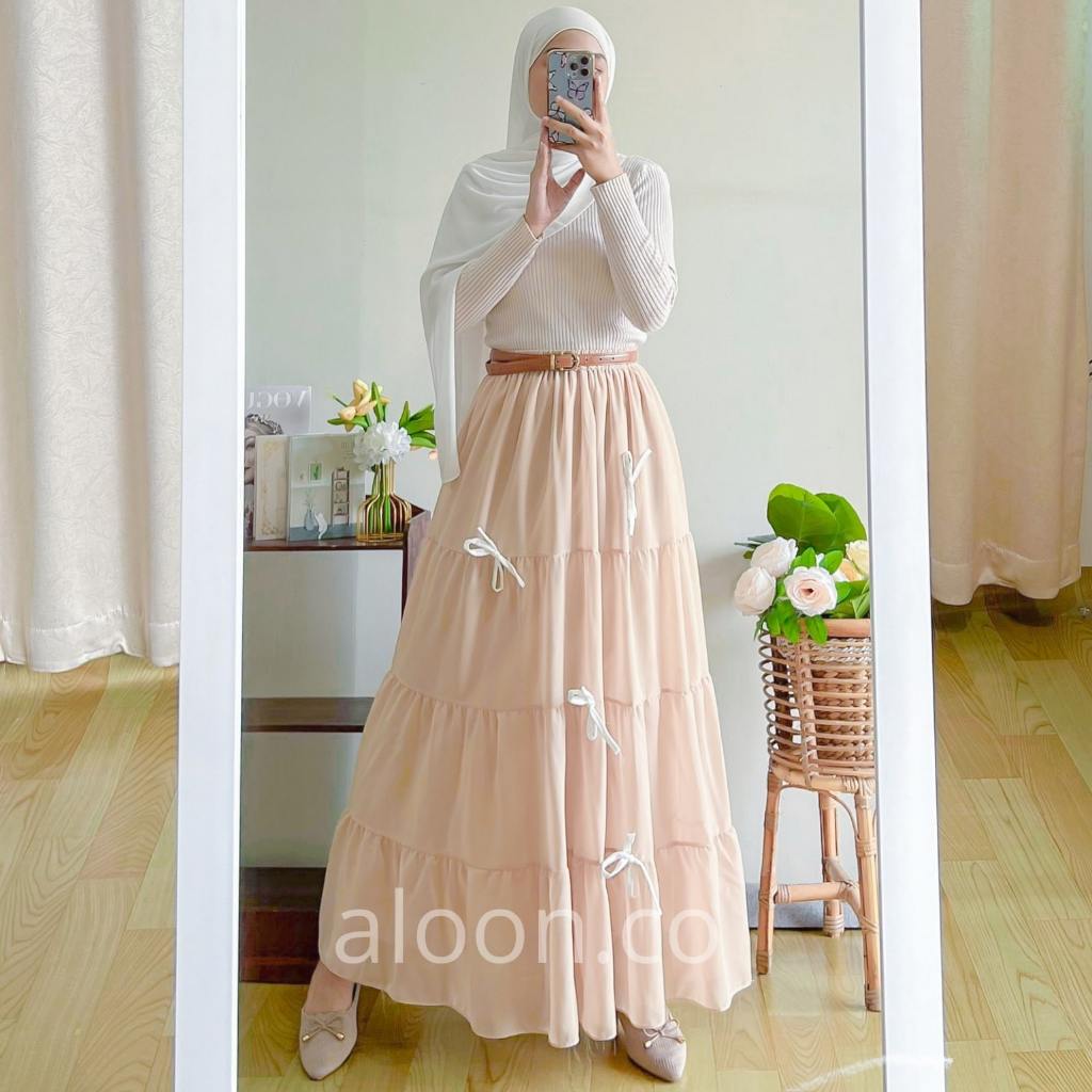 Laluna Premium Ceruty Babydoll Ribbon Ruffle Skirt Long Maxi Skirt Muslimah Plus Size