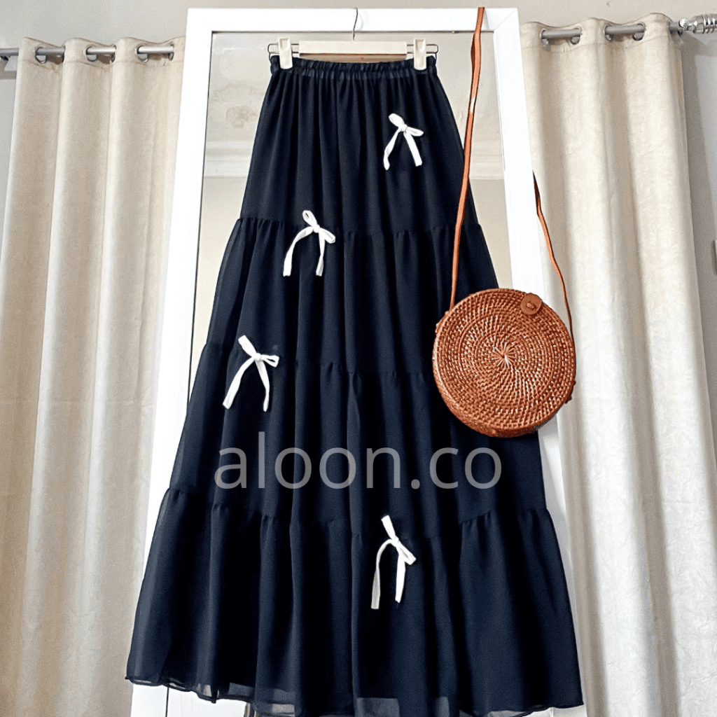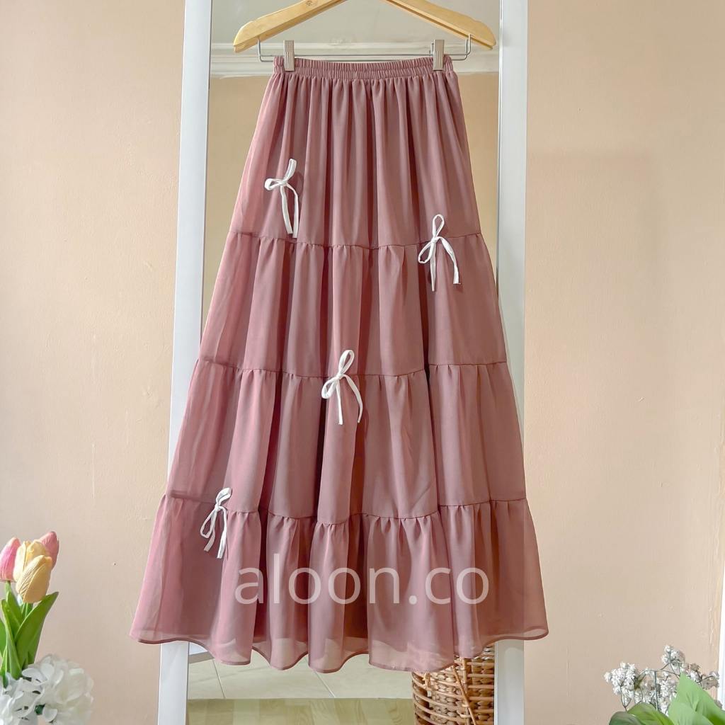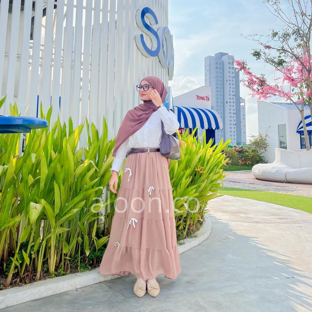 Laluna Premium Ceruty Babydoll Ribbon Ruffle Skirt Long Maxi Skirt Muslimah Plus Size
