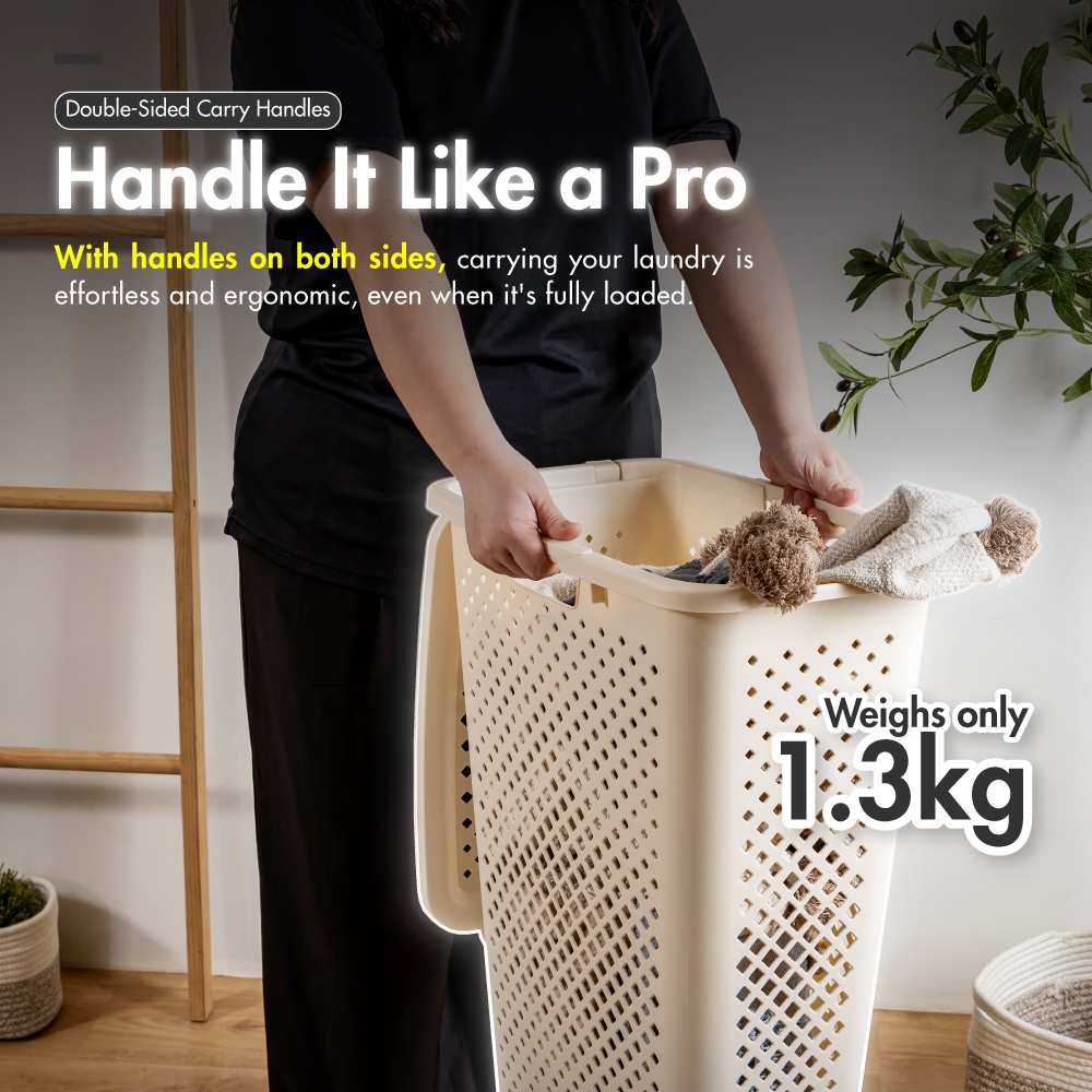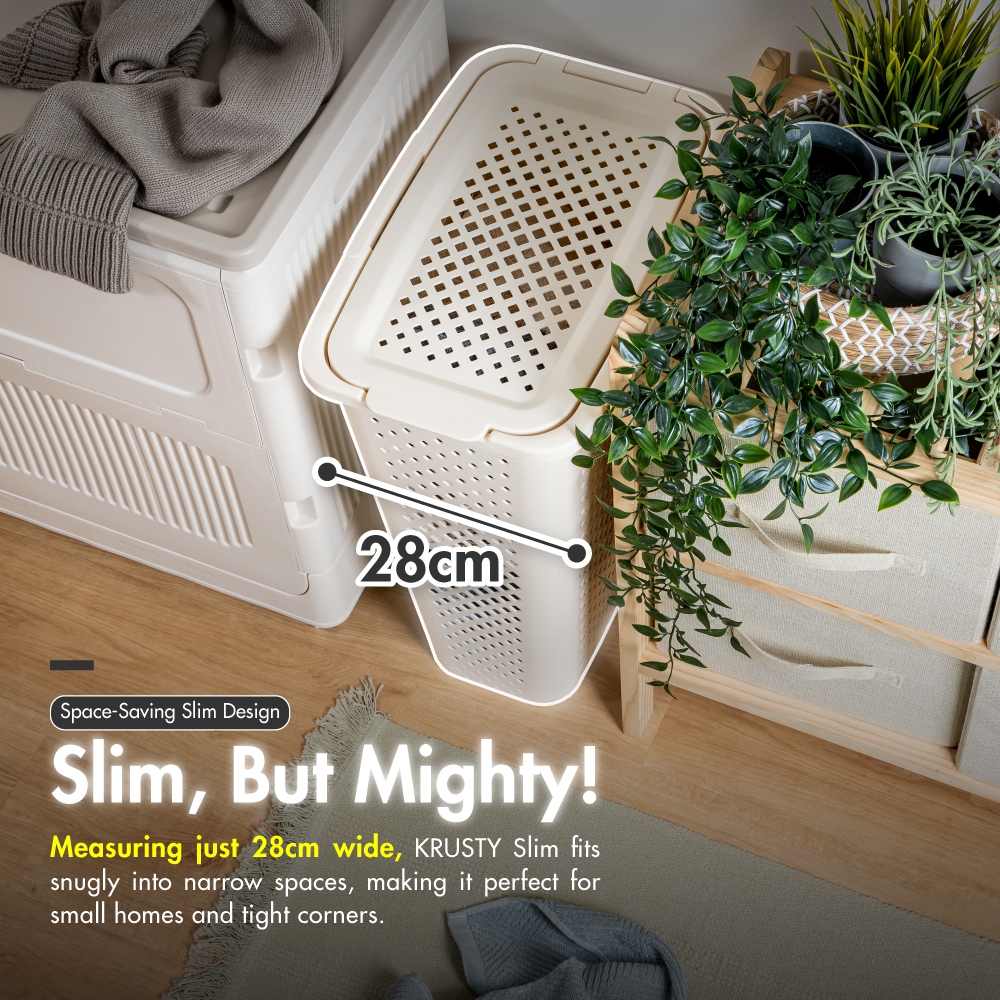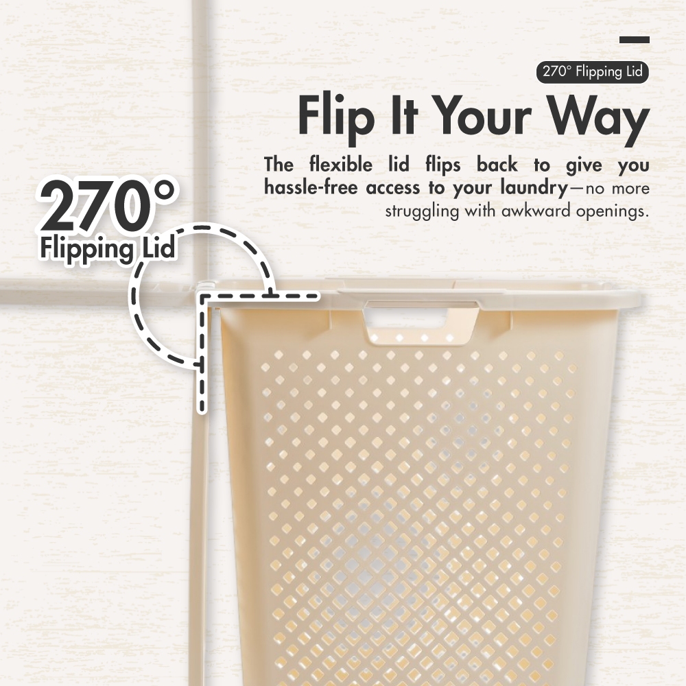 HOUZE - KRUSTY Slim 45L Laundry Basket with Flipping Lid | Organizer | Clothes |Storage| Multi-purpose