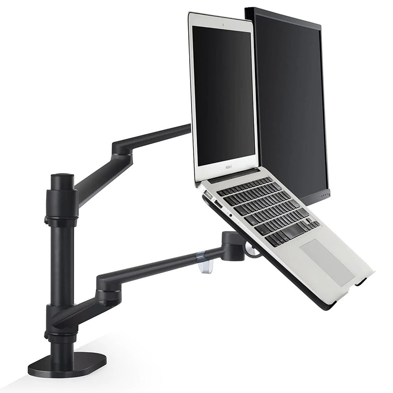 Monitor and Laptop Dual Arm Desk Stands 2 in 1 Swivel Desk Mount Monitor Arm Stand Holder Bracket
