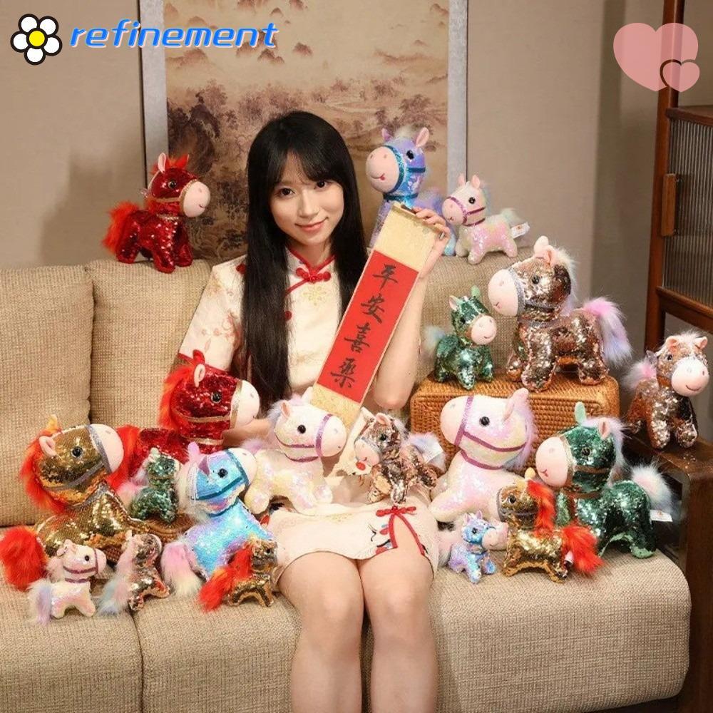 REFINEMENT Horse Plush Doll, Fabric Material Stuffed Pretty Flashing Horse Plush Toy, Mascot Decor Colorful Sequined Pony Decor Cultural Display