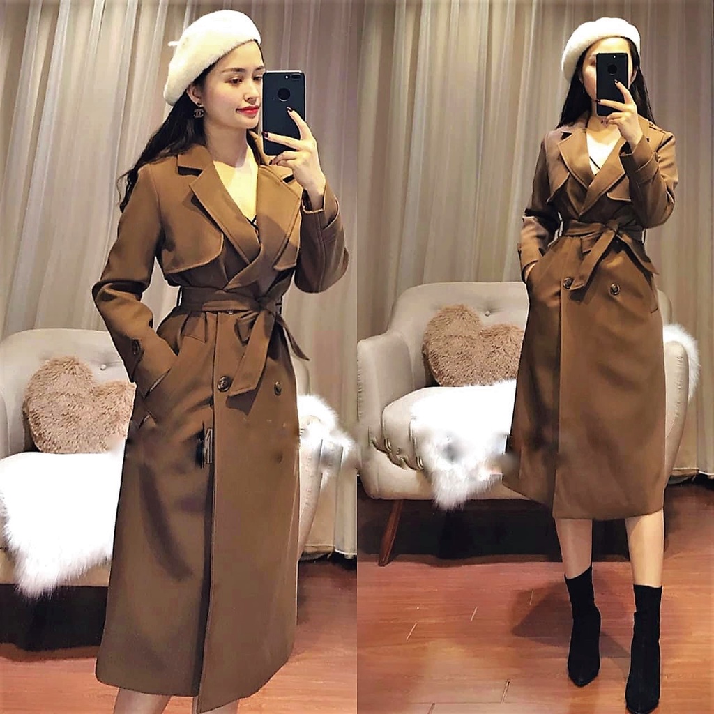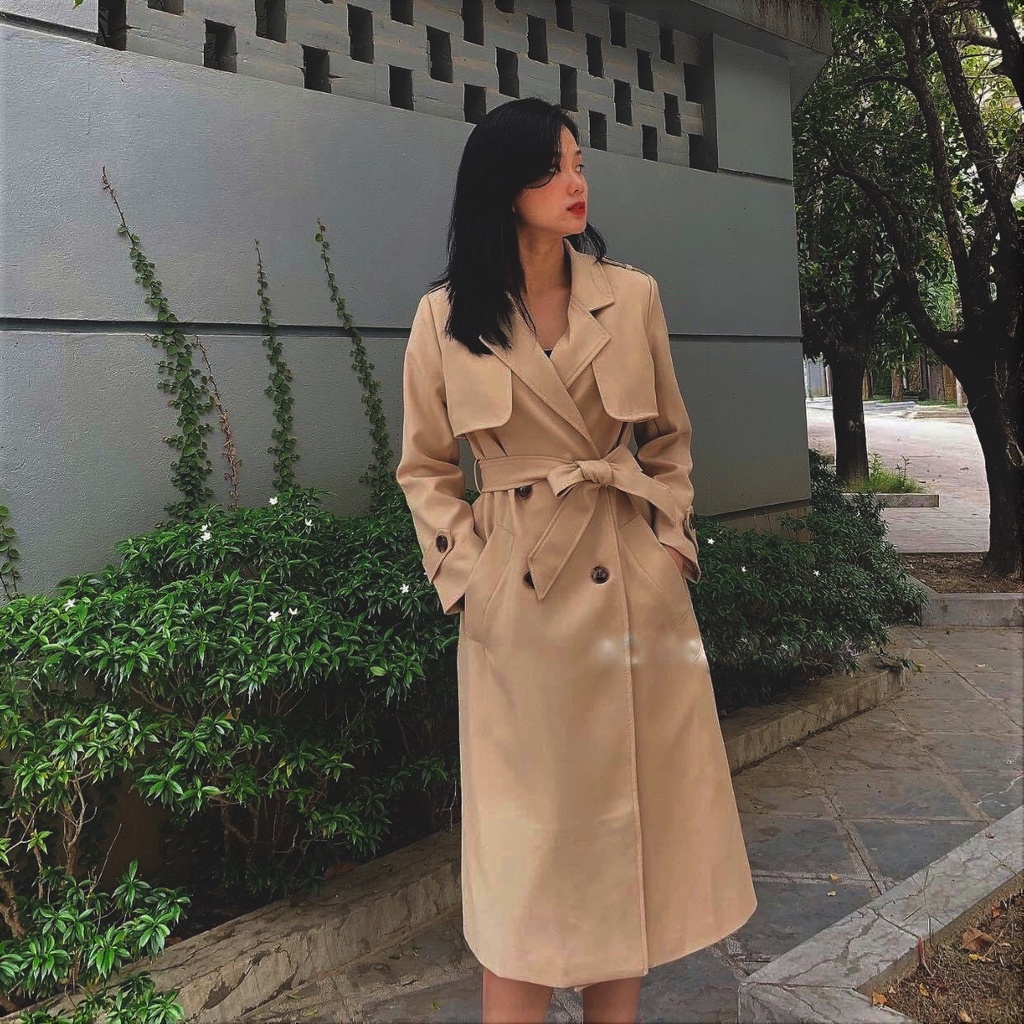 LONG kaki Trenchcoat BAO KHANH SHOP Long Trenchcoat made of thick khaki twill material 057