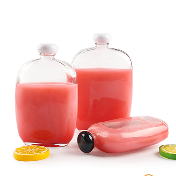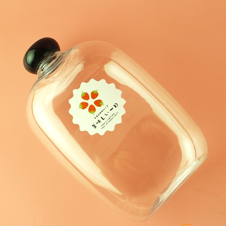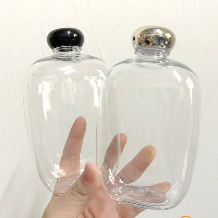 Convenient creative milk tea bottle, disposable flat round shoulder PET plastic bottle