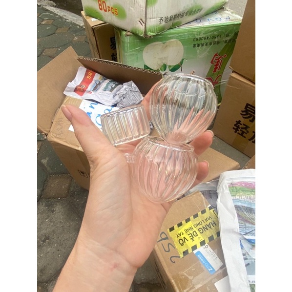 Hoa Mi, Chich Choe Tau glass cup with knurled body and pointed bottom with high-quality Vip ears and sturdy ear latch