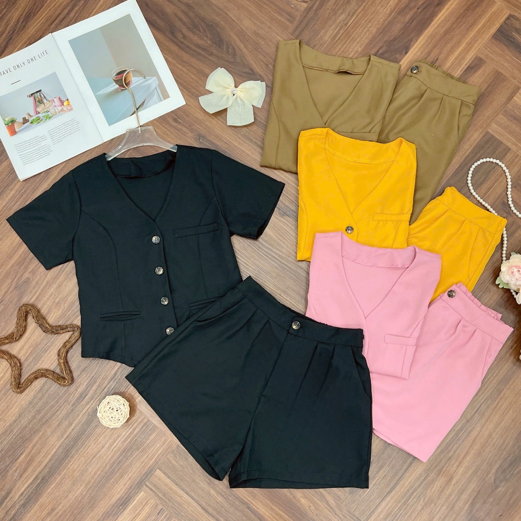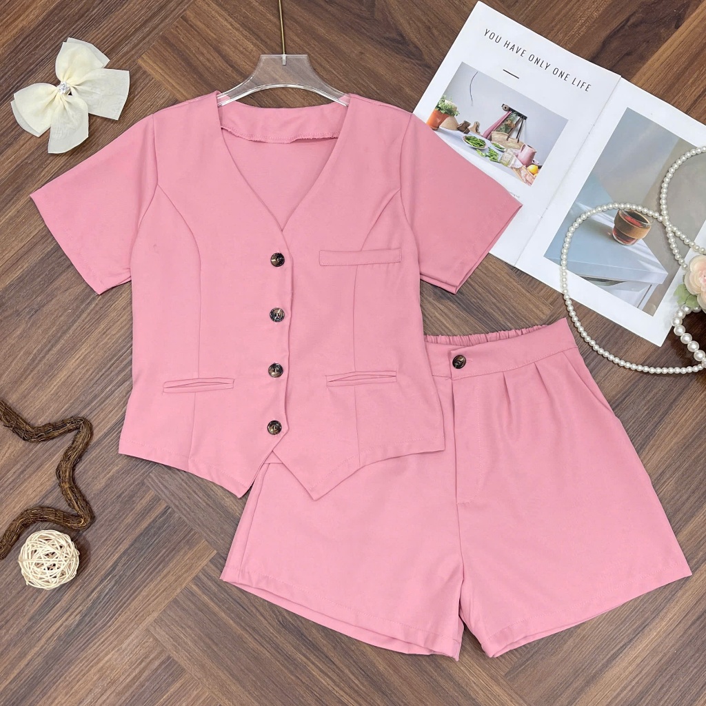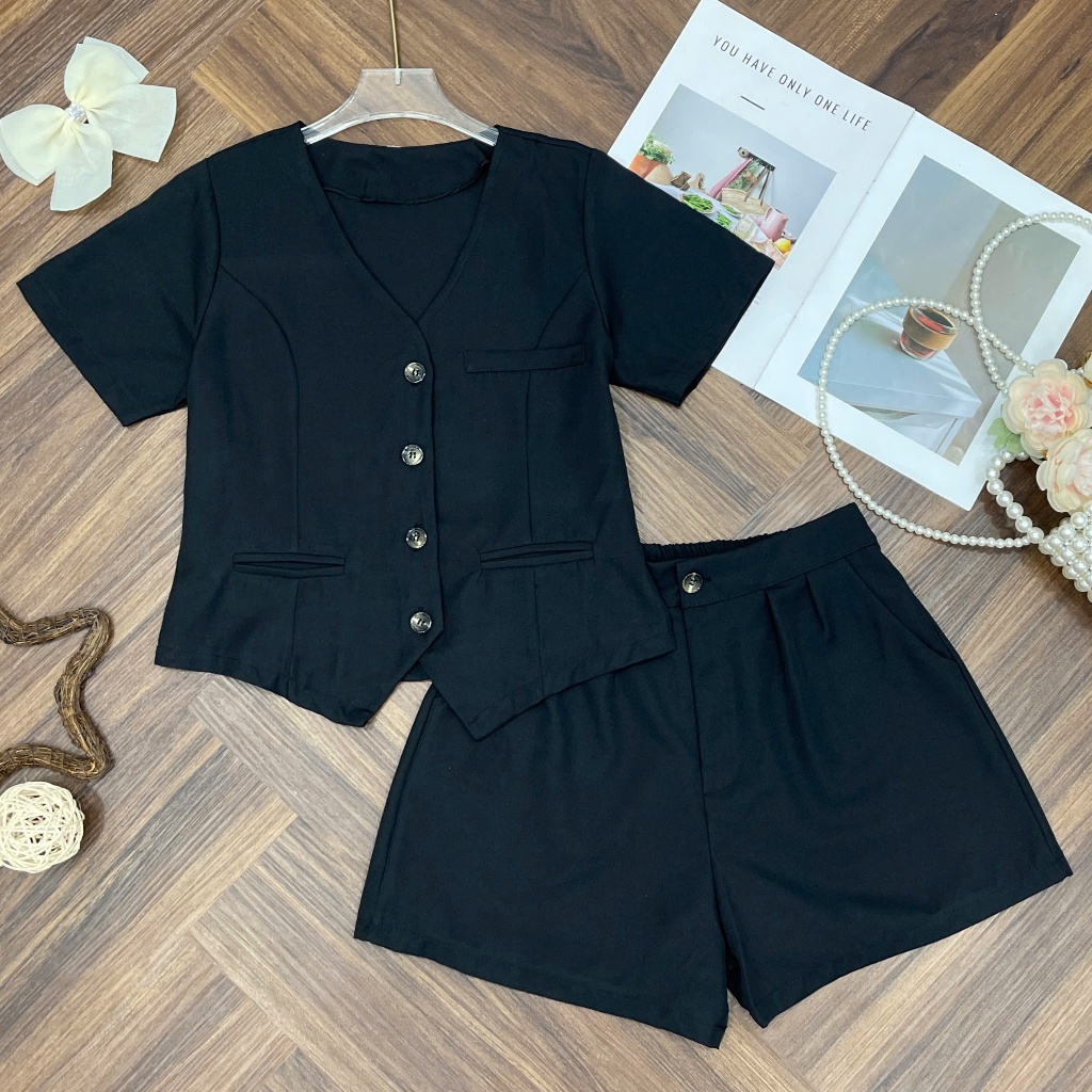 Bigsize Fashion - Bigsize V-Neck Short Sleeve Gile Set with Beautiful Design Thai Silk Cross ChunkyShorts 40-95kg