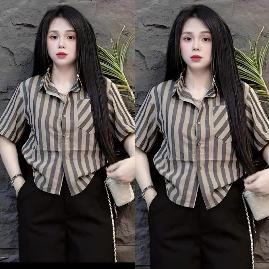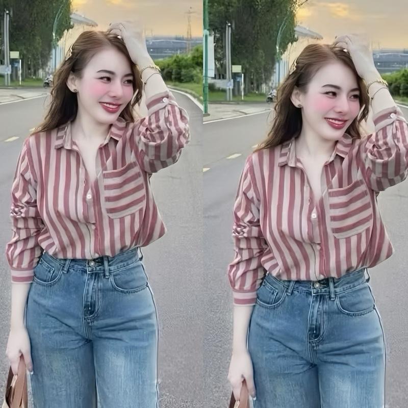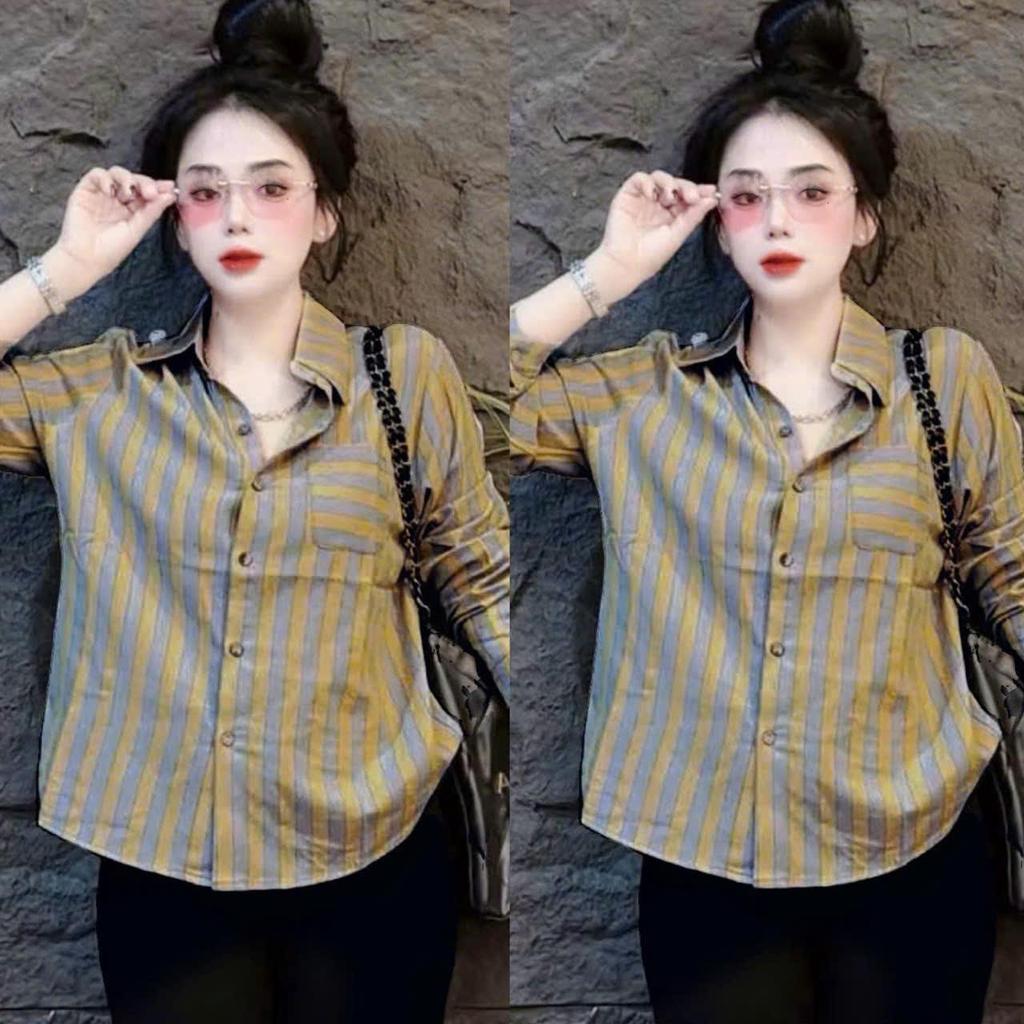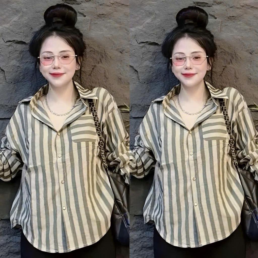 Bigsize 40-95kg Striped Shirt Women's Basic Loose Long Sleeve Rough Linen Fabric Soft Beautiful High Quality Cute Hot - 2505
