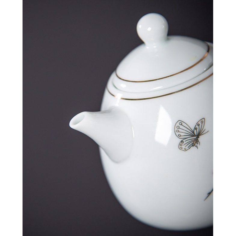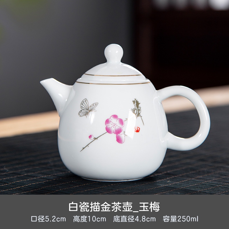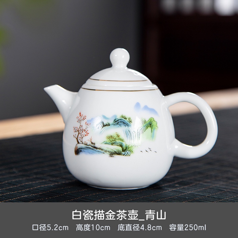Hand-painted Canh Duc Porcelain Kettle with Beautiful Son Thuy Pattern 250 ml (Translucent white porcelain, Long Dan pot shape)