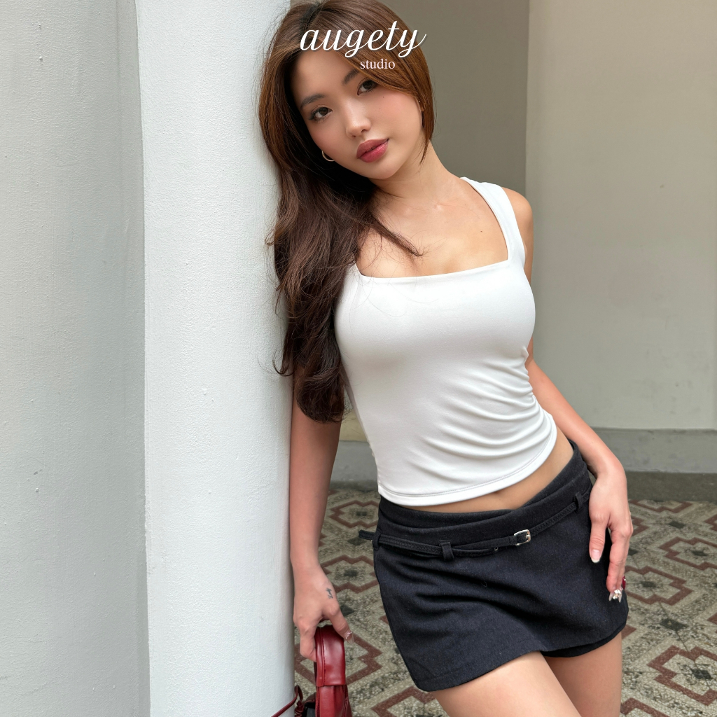 Augety Studio Low-Rise Belted Short Skirt, KENDIE Skirt