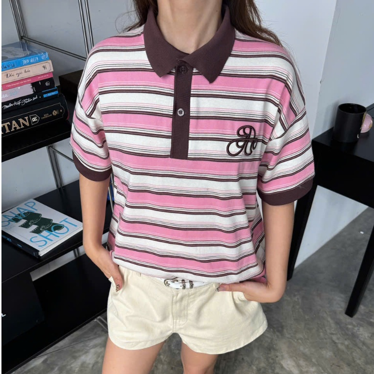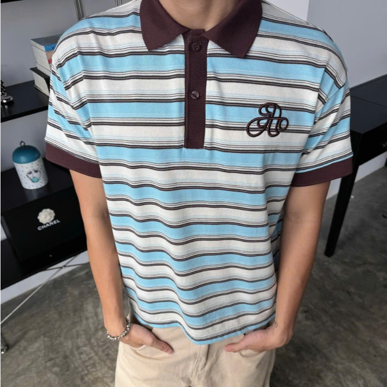 [Collection 2025] AB HOUSE - Short-sleeved A-line embroidered striped Polo shirt for men and women