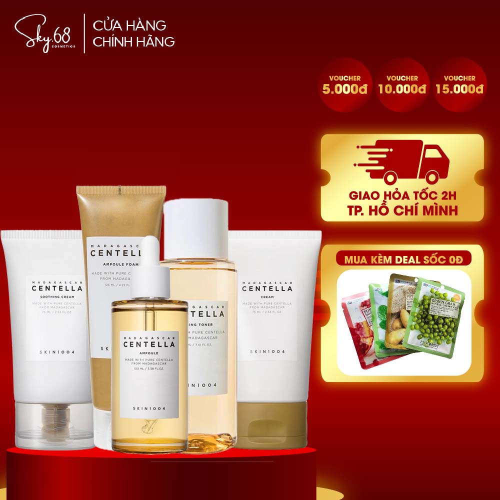 Set of 5 Skin Soothing Products with Centella Asiatica Extract Skin1004 Madagascar Centella (SRM + Toner + Serum + Day Cream + Night Cream)
