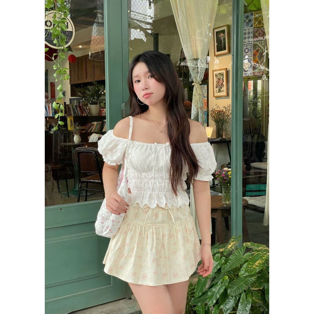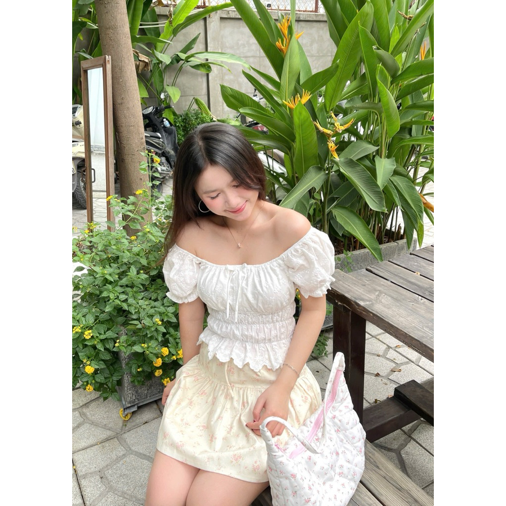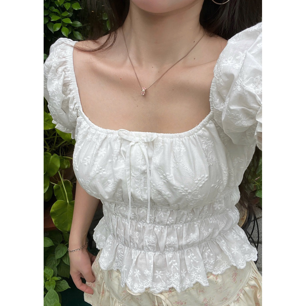 Darlin top - embroidered puff sleeve shirt - ICHI.SG