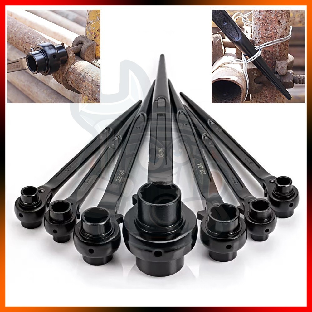 Double Head Scaffolding Ratchet Wrench 12 Point Nut Bolt Spannar Scaffold Socket Wrenches Double Side Construction Tool Ratchet Wrench Set Spanner Set