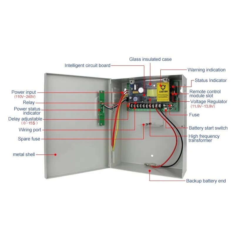 12V/5A Uninterrupted Power Supply Box for Door Access Control (AC 110-240V) - Ideal for Biometric Terminal Reader System