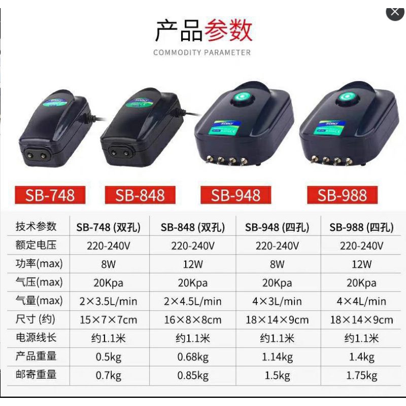 Ready Stock🔥 SOBO Air Pump SB-748 SB-988 SB-848 for aquarium 松宝氧气泵 SOBO水族鱼缸养鱼增氧泵