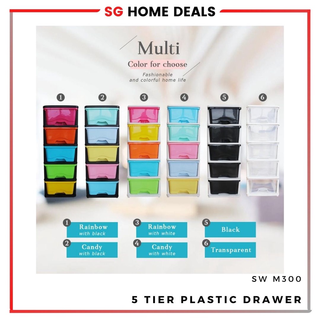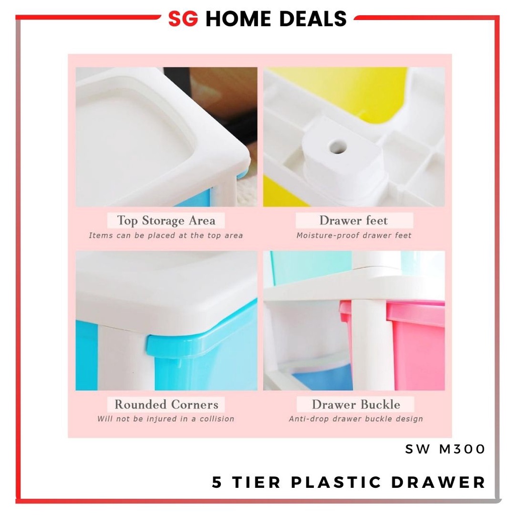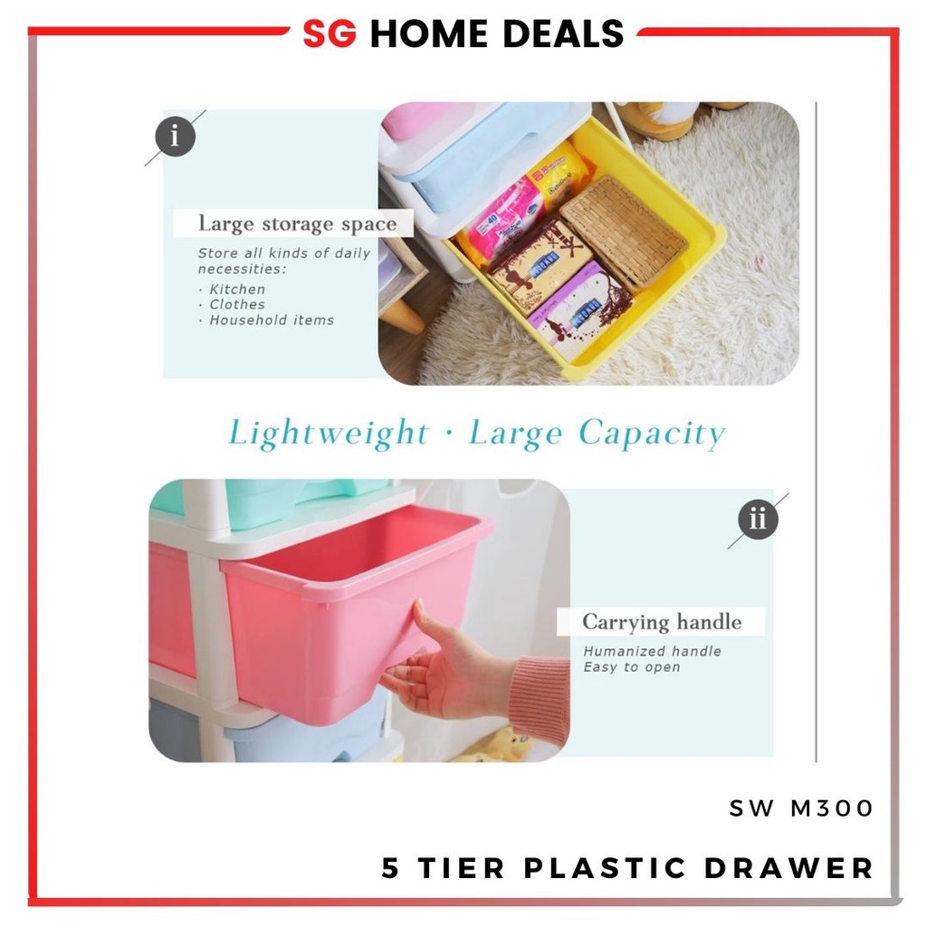[SG STOCKS] 5 Tier Plastic Drawer / Smart Plastic Cabinet / Simple & Modern design / SW-M300