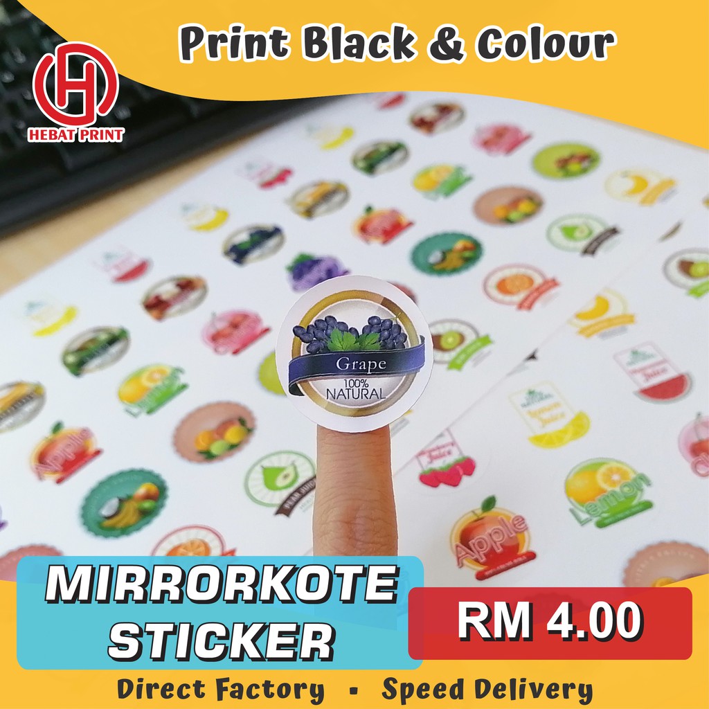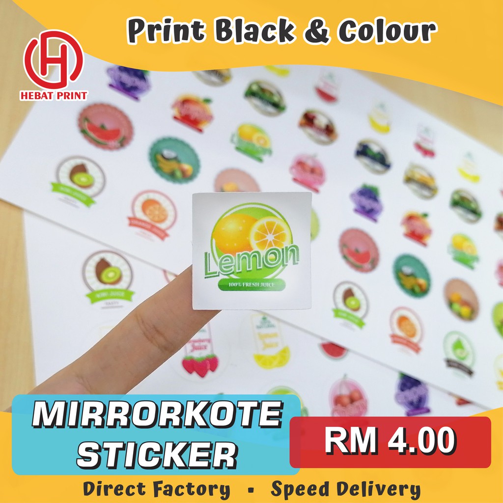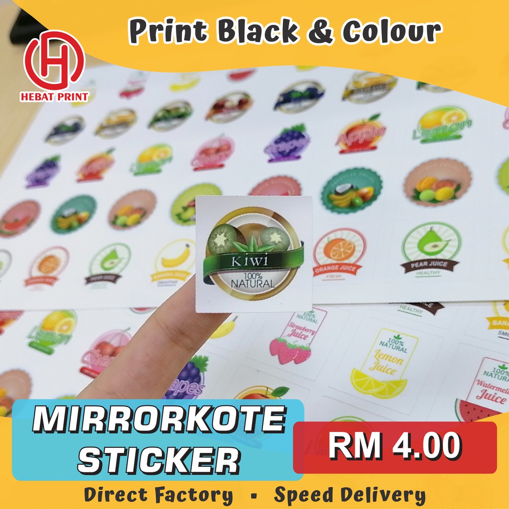 Customize Mirrorkote Sticker / Print Black and Colour / Print & Cut